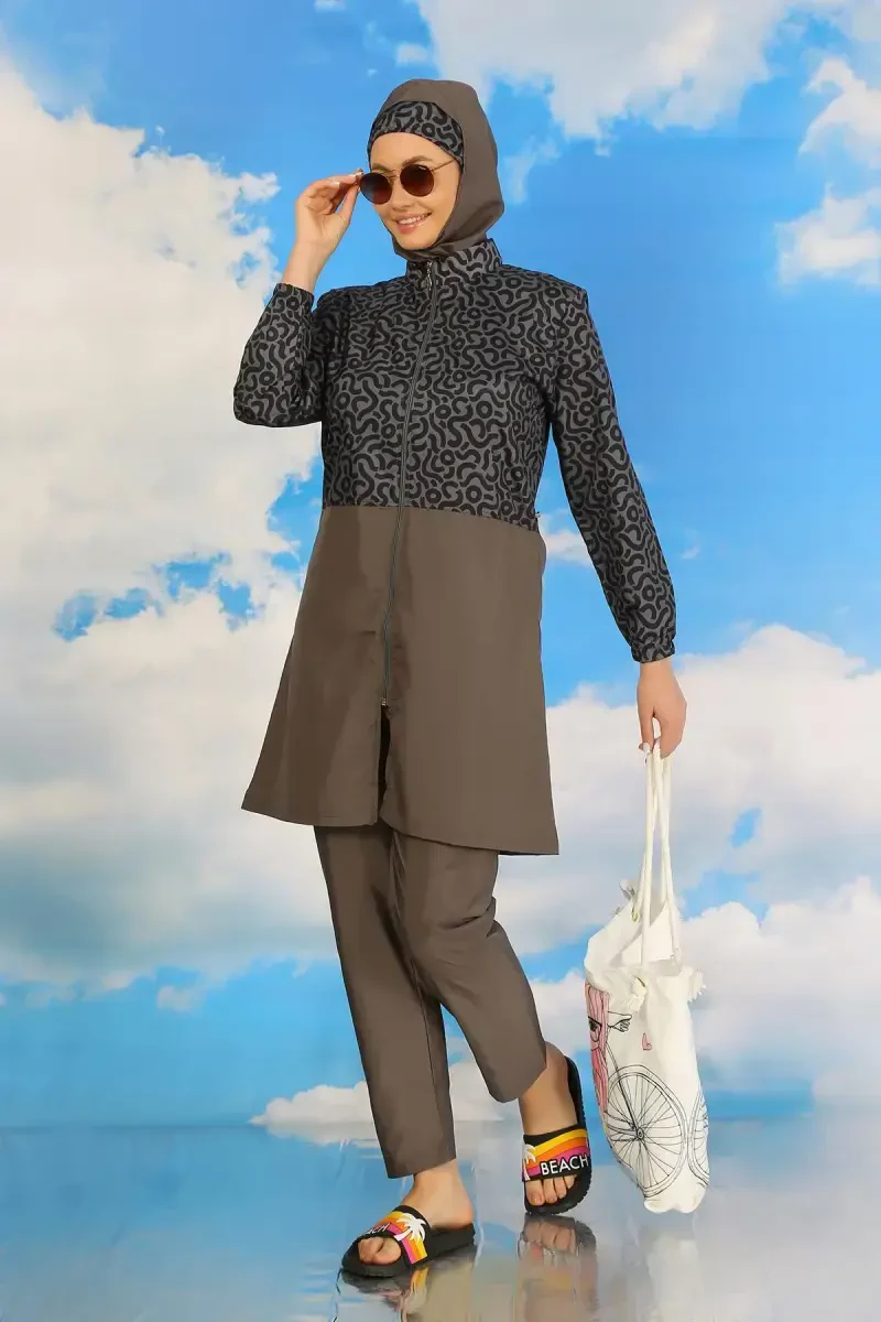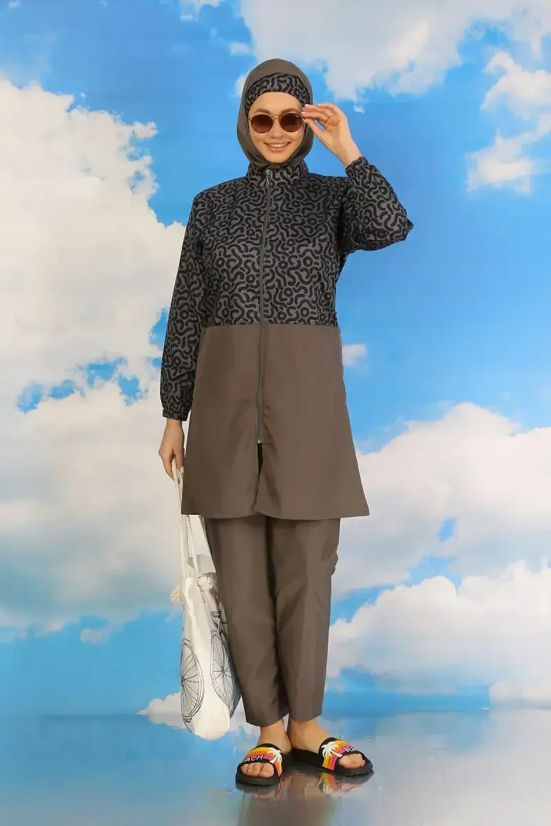 Akbeniz Kadın Pantolonlu Desenli Tam Tesettür Mayo Füme 31074, sıcak yaz günlerinde hem şıklığınızı koruyacak hem de rahat bir yüzme deneyimi sunacak mükemmel bir seçimdir. Yüksek kaliteli kumaşı, modern tasarımı ve tesettür giyim hassasiyetine uygun yapısıyla öne çıkan bu mayo, plajda ve havuzda kendinizi güvende ve özgür hissetmenizi sağlar.