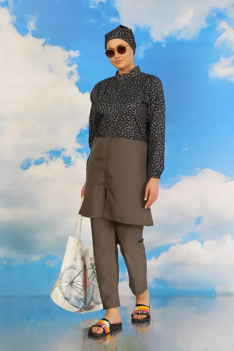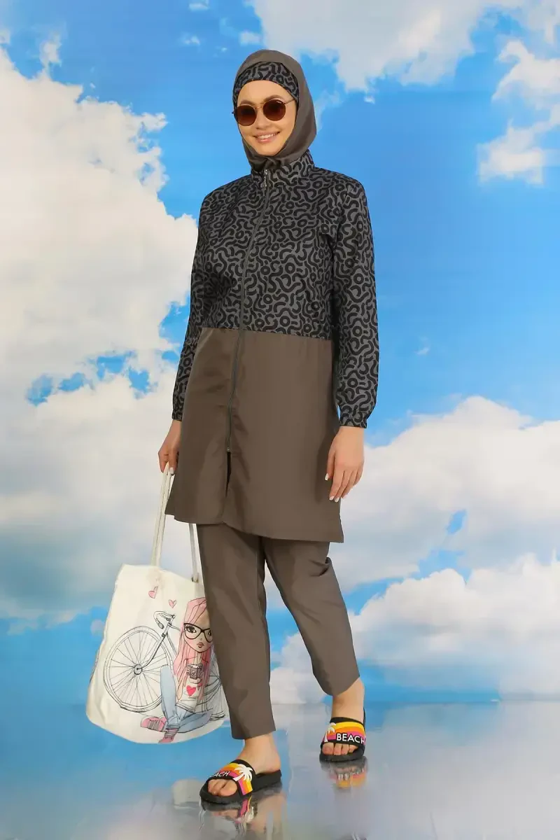 Акбениз Женские Брючные Узорчатые Полностью Закрытые Купальники Дымчатый 31074