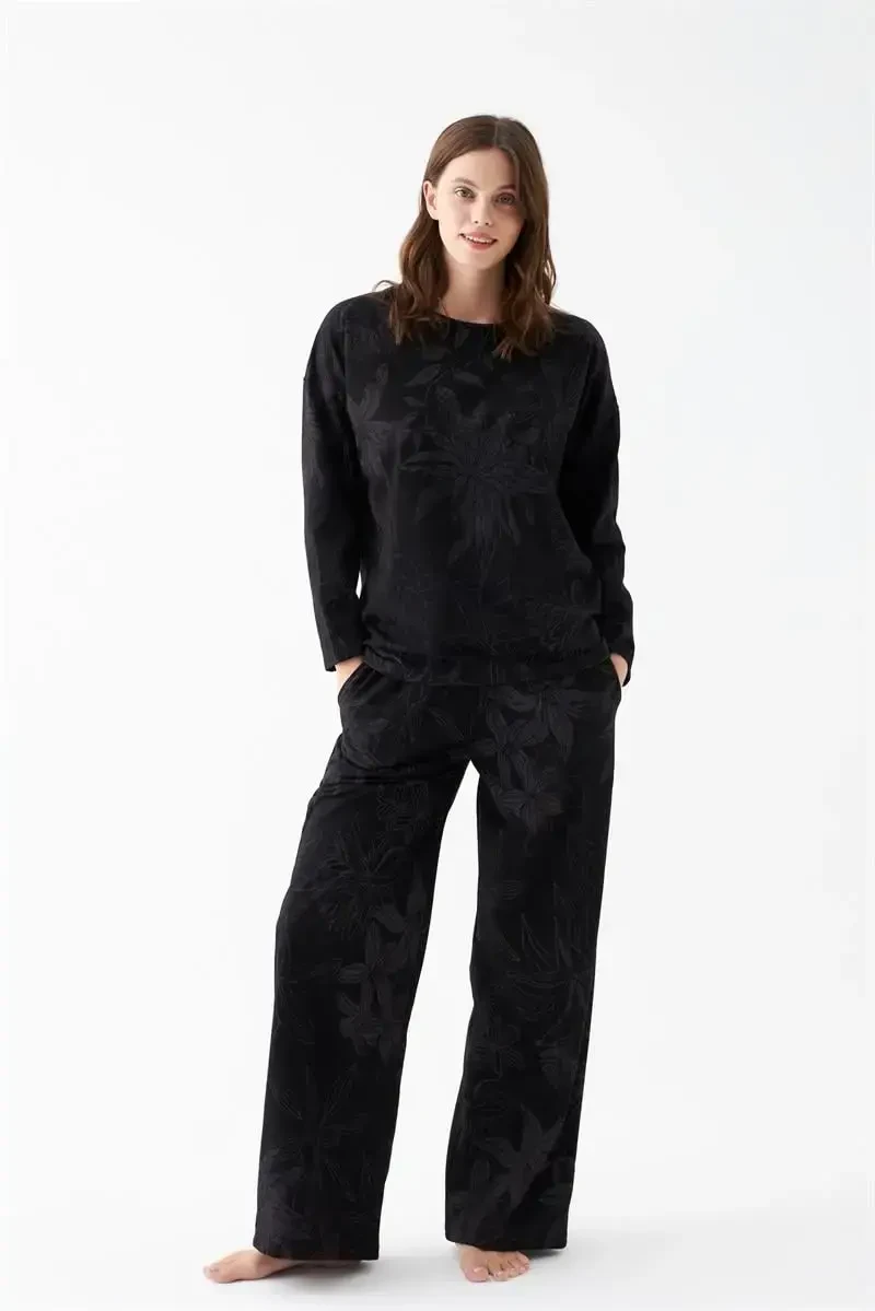 Akbeniz Kadın Oversize Siyah Çiçek Desenli Pamuklu Pijama Takımı ile ev giyiminde konfor ve şıklığı bir arada yaşayın. Bu özel tasarım pijama takımı, günün yorgunluğunu üzerinizden atarken stilinizden ödün vermemenizi sağlar. Tamamen siyah tonlardaki zarif çiçek desenleri, pijama takımına sofistike bir hava katarken, oversize kesimi rahat bir kullanım deneyimi sunar. Yüksek kaliteli pamuklu kumaşı sayesinde cildiniz gün boyu nefes alır ve tahriş olmaz. İster evde dinlenirken, ister misafirlerinizi ağırlarken, ister keyifli bir film gecesi yaparken bu pijama takımı her zaman şık ve rahat hissetmenizi sağlar. Akbeniz kalitesiyle üretilen bu pijama takımı, uzun ömürlü ve dayanıklıdır. Siyahın asaletini ve çiçek desenlerinin zarafetini bir araya getiren bu tasarım, ev giyiminde farklılık arayan kadınlar için ideal bir seçimdir. Geniş paçalı alt tasarımı, hareket özgürlüğünüzü kısıtlamaz ve gün boyu konforlu bir kullanım sunar. Üstelik, bu pijama takımı sadece rahat olmakla kalmaz, aynı zamanda şıklığıyla da göz kamaştırır. Evde geçirdiğiniz zamanı daha keyifli hale getirmek için Akbeniz Kadın Oversize Siyah Çiçek Desenli Pamuklu Pijama Takımını tercih edin. Gardırobunuzun vazgeçilmez bir parçası olacak bu pijama takımı, hem kendiniz için hem de sevdikleriniz için harika bir hediye seçeneği olabilir. Akbeniz güvencesiyle sunulan bu özel tasarım pijama takımı, ev konforunuza lüks bir dokunuş katacak. Ürün Kodu: 2789 - Siyah