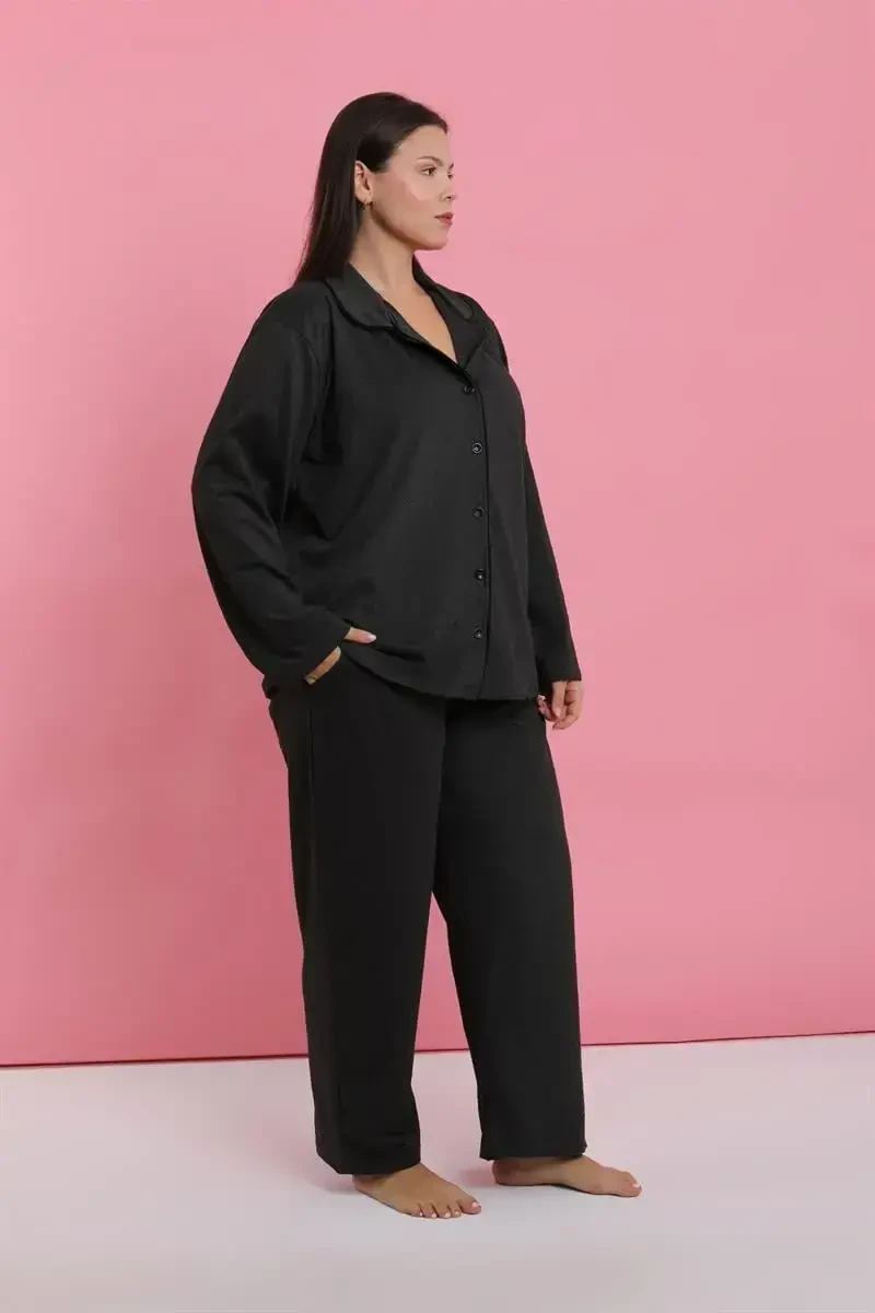 Код: 202525. Женский пижамный комплект Akbeniz больших размеров с пуговицами дымчатого цвета изготовлен из высококачественных материалов и подходит для длительного использования. Если соблюдать инструкции по стирке, он сохранит свой цвет и форму в течение длительного времени. Идеальный выбор для женщин больших размеров, которые ищут стиль и комфорт в одном.
