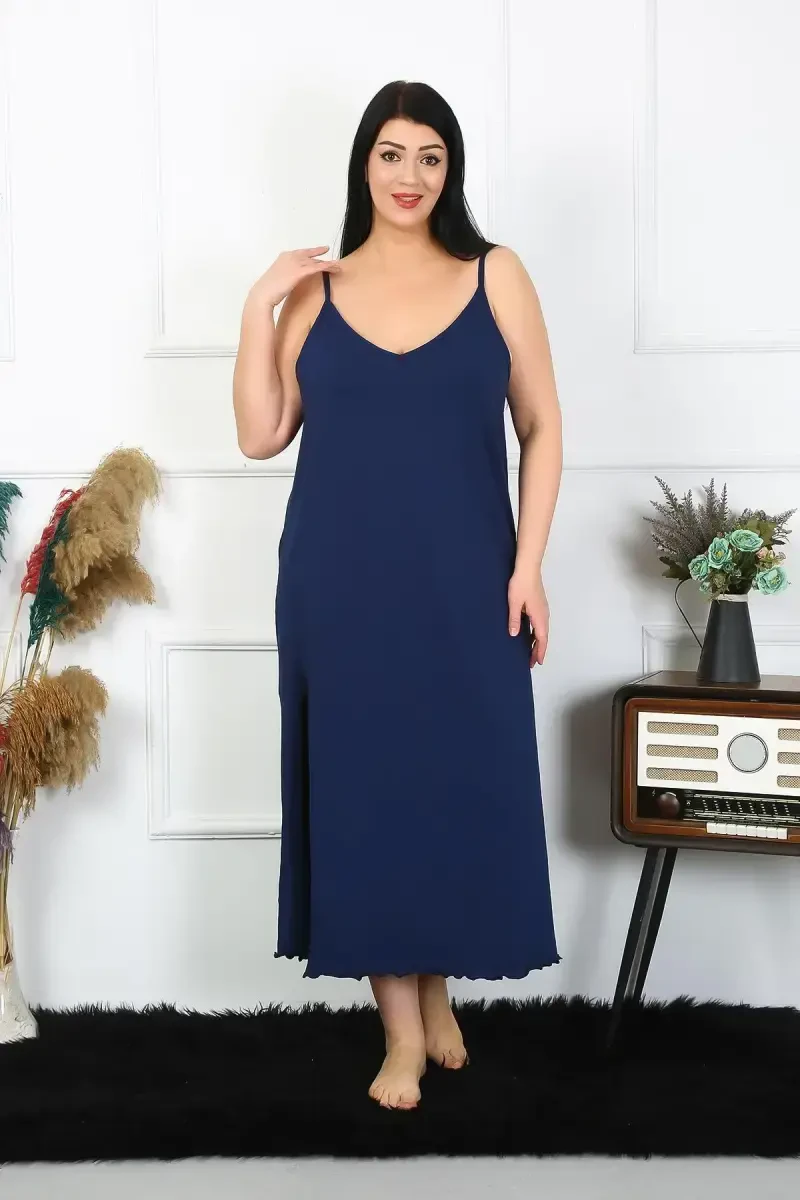 Ощутите комфорт и элегантность с большой хлопковой ночной сорочкой на тонких бретельках Akbeniz для женщин, темно-синего цвета, 12100. Ночная сорочка обеспечивает мягкое прикосновение благодаря составу из 90% хлопка и 10% лайкры, а эластичная структура обеспечивает комфортный сон. Дизайн на тонких бретельках придает женственный вид, а темно-синий цвет подчеркивает элегантность. Эта ночная сорочка, доступная в больших размерах и подходящая для любого типа фигуры, является идеальным выбором для женщин, которые ценят комфорт и элегантность. Вы можете расслабиться после тяжелого дня и чувствовать себя комфортно всю ночь благодаря хлопковой ткани, которая позволяет вашей коже дышать. Эта ночная сорочка, произведенная компанией Akbeniz, обеспечивает длительный срок службы и сохраняет свою форму после стирки. Будь то дома, во время отдыха или в путешествии, эта ночная сорочка всегда будет ставить ваш комфорт на первое место. Эта темно-синяя длинная ночная сорочка, созданная для женщин размера плюс, которые ищут сочетание элегантности и комфорта, станет незаменимой вещью в вашем гардеробе. Akbeniz продолжает предлагать продукты, тщательно разработанные для того, чтобы женщины чувствовали себя хорошо. С этой ночной сорочкой вы получите как комфортный сон, так и не пожертвуете своей элегантностью. На манекене размер 3XL, доступны различные размеры. Вы можете выбрать тот, который вам подходит, изучив таблицу размеров. Помните, комфорт и элегантность - это ваше право!