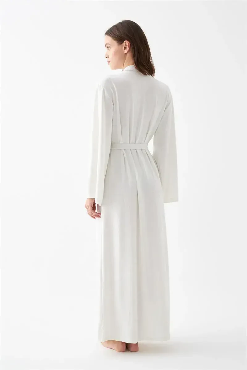 Сочетайте стиль и комфорт в домашней одежде с длинным женским пеньюаром экрю из хлопкового трикотажа от Akbeniz. Разве вы не хотите, чтобы первая вещь, которую вы наденете, проснувшись утром, была одеждой, которая поможет вам хорошо начать свой день? Этот пеньюар как раз для этого. Благодаря мягкой текстуре, удобному крою и элегантному дизайну, длинный женский пеньюар экрю из хлопкового трикотажа от Akbeniz сделает время, проведенное дома, более приятным. Изготовленный из 100% хлопкового трикотажа, он нежно прикасается к вашей коже, а дышащая структура предотвращает потоотделение и сохраняет свежесть в течение всего дня. Длинный крой не только согревает, но и не ограничивает свободу движений. Вы будете чувствовать себя так, будто его нет на вас, попивая утренний кофе, читая газету или смотря телевизор. Благородство цвета экрю придает пеньюару простой и стильный вид. Этот цвет станет одной из незаменимых вещей в вашем гардеробе благодаря своей способности адаптироваться к любому стилю и легко сочетаться с другими вещами. Наденьте его поверх комплекта пижамы или комбинируйте с ночной сорочкой, вы всегда будете выглядеть стильно. Akbeniz, бренд, сочетающий в себе качество и стиль в женской одежде, проявил ту же заботу и в этом пеньюаре. Благодаря качеству швов, выбору ткани и деталям дизайна, длинный женский пеньюар экрю из хлопкового трикотажа от Akbeniz - это продукт, который вы сможете использовать как новый долгие годы. Простота стирки и глажки также обеспечивает простоту использования. Если вы хотите побаловать себя или сделать значимый подарок своим близким, длинный женский пеньюар экрю из хлопкового трикотажа от Akbeniz станет отличным выбором. Этот пеньюар, сочетающий в себе комфорт и стиль, является одной из основных вещей, которые должны быть в гардеробе каждой женщины. Доверьтесь качеству Akbeniz, чтобы сделать время, проведенное дома, более ценным.