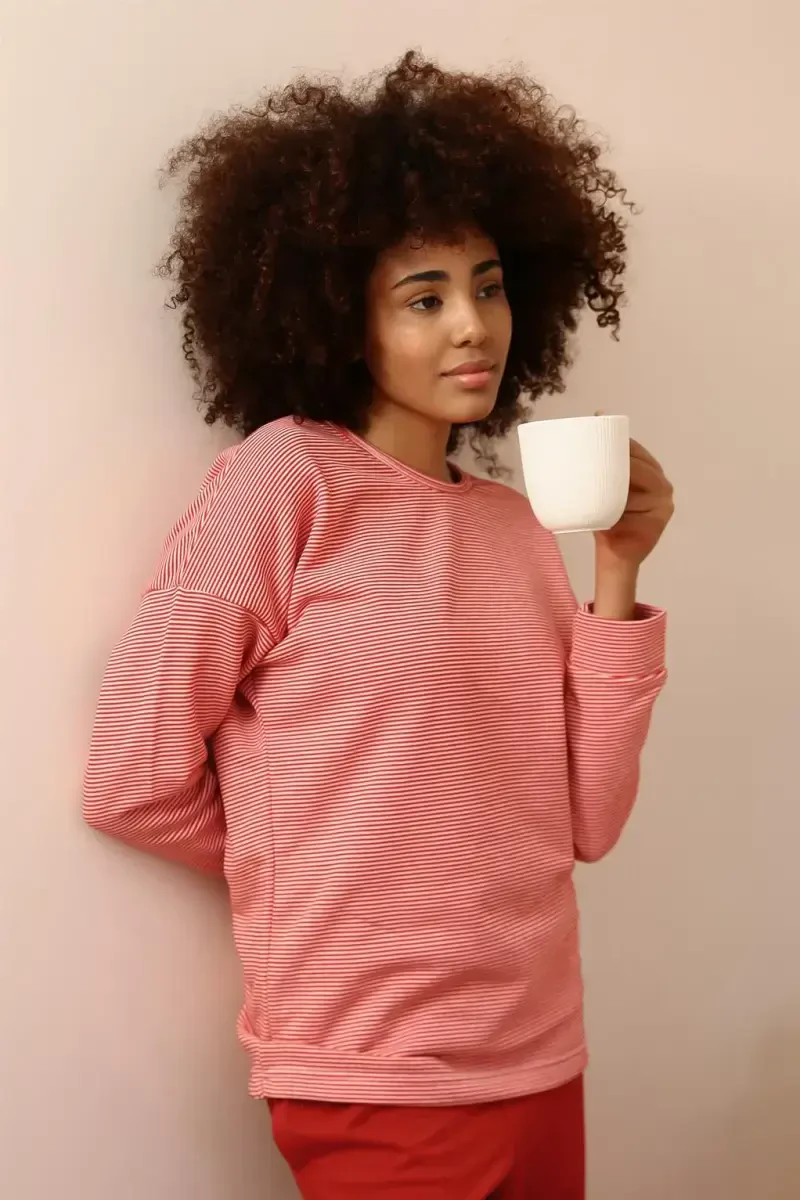 Ощутите комфорт и стиль с женским пижамным комплектом Akbeniz с длинными рукавами из трехниточной хлопчатобумажной ткани 4184. Этот пижамный комплект, изготовленный из 100% хлопка, позволяет вашей коже дышать и обеспечивает комфортный сон благодаря своей мягкой текстуре. Снимая усталость дня, он также позволяет вам чувствовать себя особенным благодаря своему стильному дизайну. Трехниточная хлопчатобумажная ткань обеспечивает долговечность и длительный срок службы пижамы, а также является идеальным вариантом в холодную погоду благодаря своей способности сохранять тепло. Akbeniz стремится сделать время, проведенное вами дома, более приятным с помощью этого пижамного комплекта, разработанного с учетом комфорта и стиля женщин. Верхняя часть пижамного комплекта имеет длинные рукава и удобный крой, что не ограничивает вашу свободу движений. Нижняя часть идеально сидит на вашей фигуре благодаря эластичному поясу и обеспечивает комфорт в течение всего дня. Находитесь ли вы дома, отдыхаете или принимаете гостей, пижамный комплект Akbeniz всегда позволит вам чувствовать себя стильно и комфортно. Женский пижамный комплект Akbeniz с длинными рукавами из трехниточной хлопчатобумажной ткани предлагает альтернативу, подходящую для любого типа фигуры, с различными вариантами размеров. Размер M на манекене может дать вам представление об общем виде и крое изделия. Вы можете выбрать размер, который соответствует вашим меркам, из таблицы размеров и приобрести пижамный комплект, который идеально вам подойдет. Akbeniz тщательно разрабатывает и производит каждое изделие, уделяя первостепенное внимание качеству и удовлетворенности клиентов. Этот пижамный комплект также является отражением качества и стиля Akbeniz. Это идеальный выбор для женщин, которые ценят комфорт и хотят ослеплять своим стилем. Закажите сейчас и ощутите комфорт Akbeniz у себя дома!