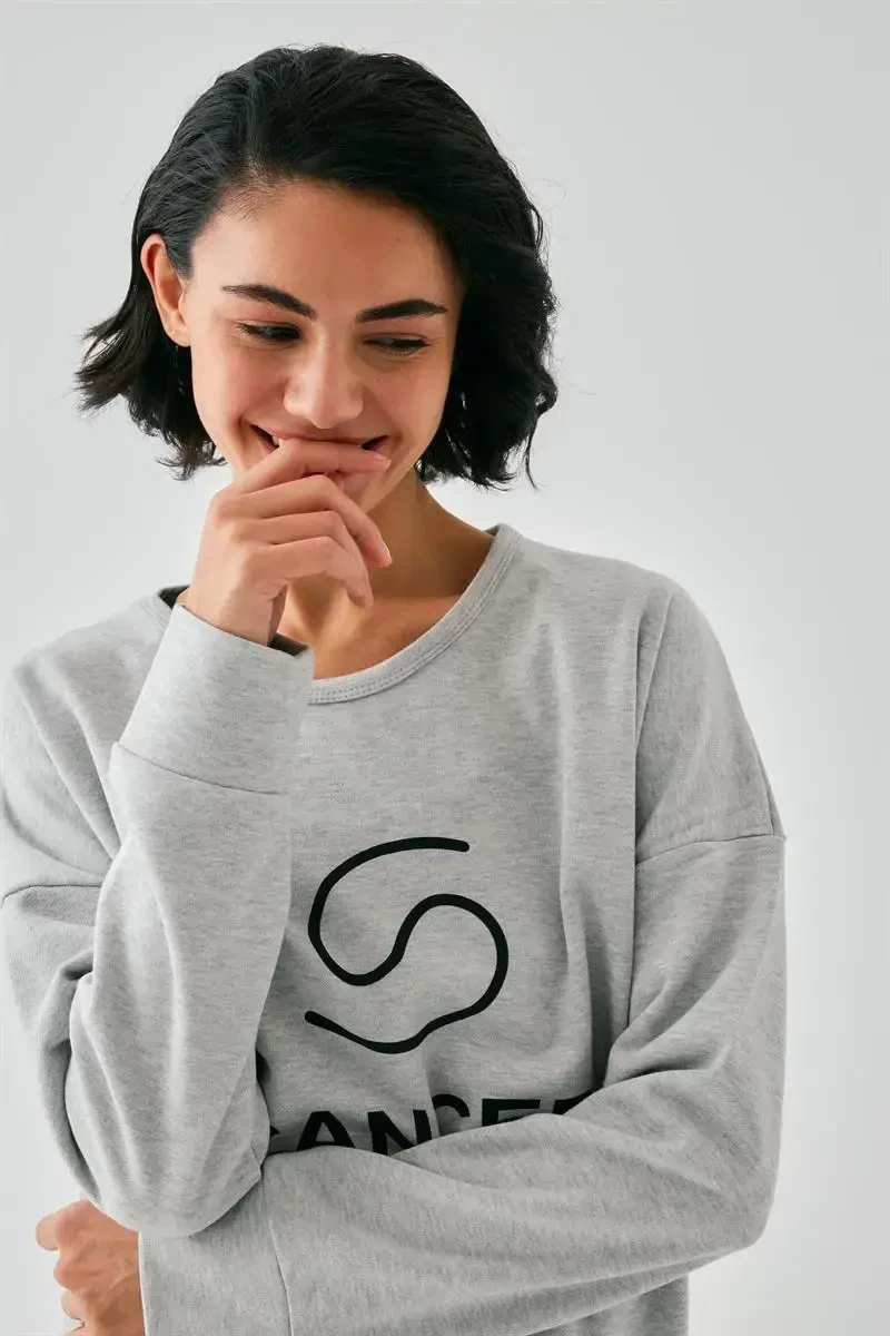 С серым женским домашним костюмом Akbeniz Oversize из 2-х ниток с изображением знака зодиака Рака вы почувствуете себя в тепле, комфорте и умиротворении. Этот эксклюзивный дизайн гармонично сочетает в себе эмоциональный и защитный дух знака зодиака Рака с успокаивающим серым тоном. Этот спортивный костюм, идеально подходящий для женщин, которые не хотят жертвовать своим стилем, снимая усталость дня, призван сделать каждый момент, проведенный дома, более приятным.Этот костюм привлекает внимание не только своим комфортом, но и стильным и элегантным дизайном. Благодаря крою оверсайз он обеспечивает удобство в течение всего дня, не ограничивая свободу движений, а двухниточная ткань дарит ощущение мягкости на коже. Качество ткани гарантирует, что она сохранит свою первоначальную форму даже при длительном использовании.Простой принт на спортивном костюме с темой "Рак" позволяет вам минимально и стильно отразить символ вашего знака зодиака. Эта деталь придает костюму индивидуальность и подчеркивает ваш стиль. Будь то отдых дома или создание удобного образа на выходные, спортивный костюм Akbeniz Cancer всегда будет с вами.Серый женский домашний костюм Akbeniz Oversize из 2-х ниток с изображением знака зодиака Рак – это не просто спортивный костюм, это образ жизни. Этот костюм, разработанный для женщин, которые хотят выглядеть умиротворенно, просто и стильно, станет незаменимой вещью в вашем гардеробе. Откройте для себя этот уникальный дизайн, чтобы почувствовать себя особенной и не жертвовать своим комфортом. Этот спортивный костюм, в каждой детали которого чувствуется забота и качество, не только подарит вам комфорт, но и поднимет вашу позитивную энергию. Превратите каждый момент, проведенный дома с Akbeniz, в удовольствие.