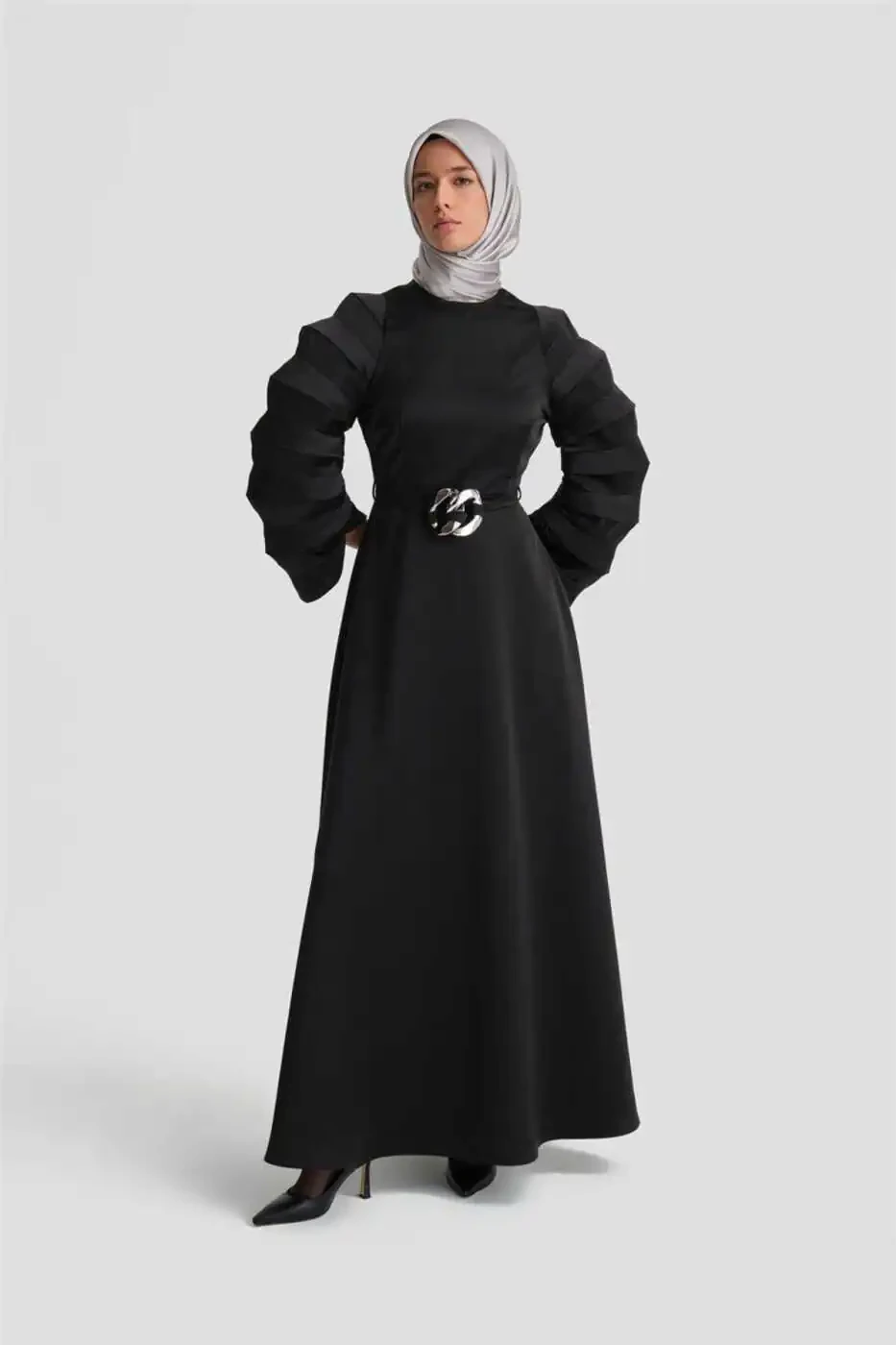 Akkordeon Yengli Nozik Ko'ylak | Armine 24k9900 | Qora