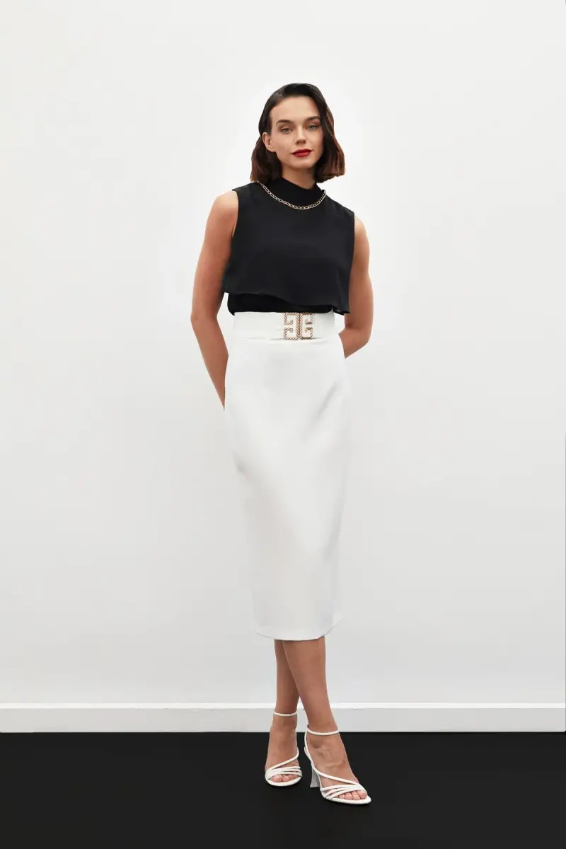 %63 Paxta %34 Poliester %3 Llycra, Aksessuar Detalli, Midi, Qalam Yubka