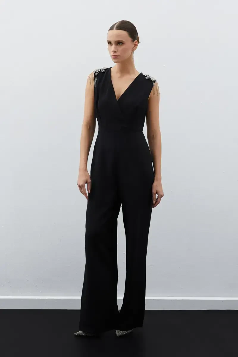 This black jumpsuit, which combines timeless elegance with comfort, will be an indispensable piece of your wardrobe. The jumpsuit, which will make you stand out in any environment with its elegance, will help you complete your style on special occasions or in your daily life.