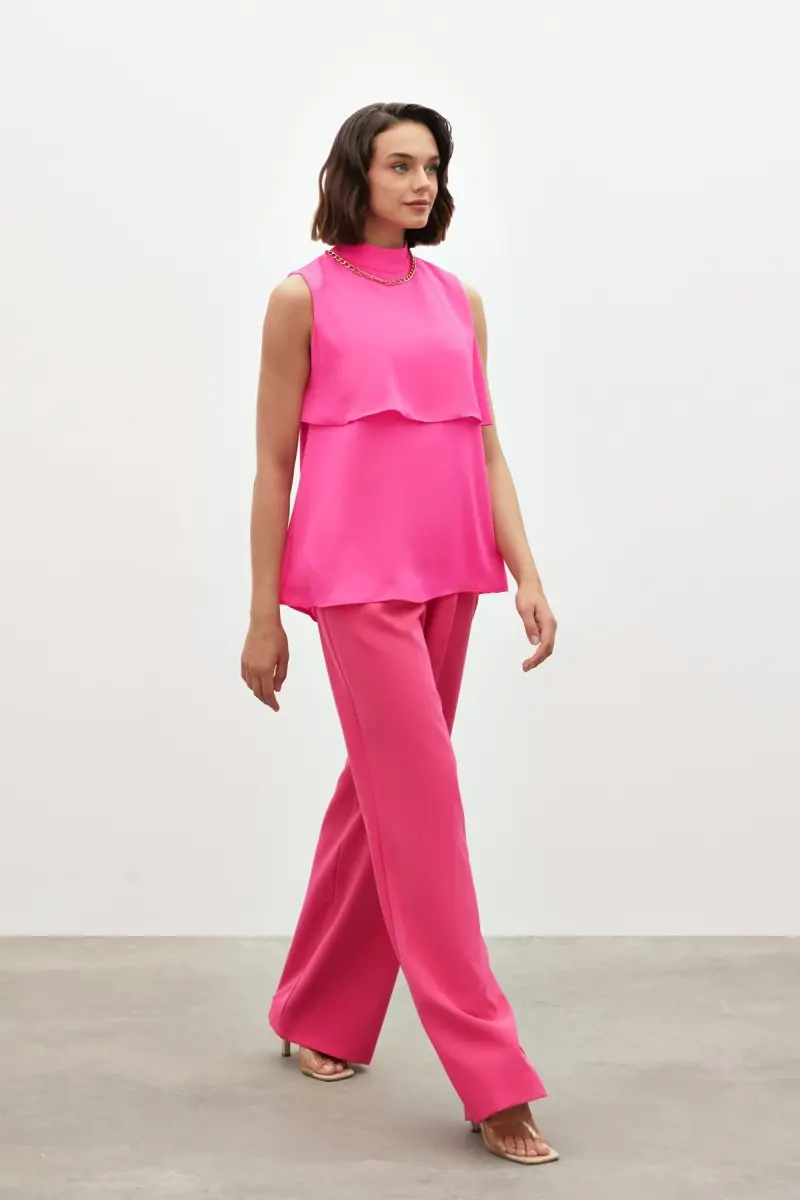 Şıklığı ve rahatlığı bir araya getiren Aksesuar Detaylı Volanlı Bluz, gardırobunuzun yeni gözdesi olmaya hazır. Fuşya rengi ile enerji ve canlılık katacak bu bluz, zarif volanları ve dikkat çekici aksesuar detaylarıyla benzersiz bir tarz sunuyor.