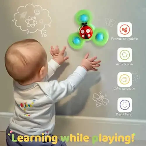 ALASOU 3PCS Suction Cup Spinner Toys are a perfect birthday gift or holiday gift for 1 year old boys and girls. These toys are a great way to keep your baby entertained and learning at the same time.