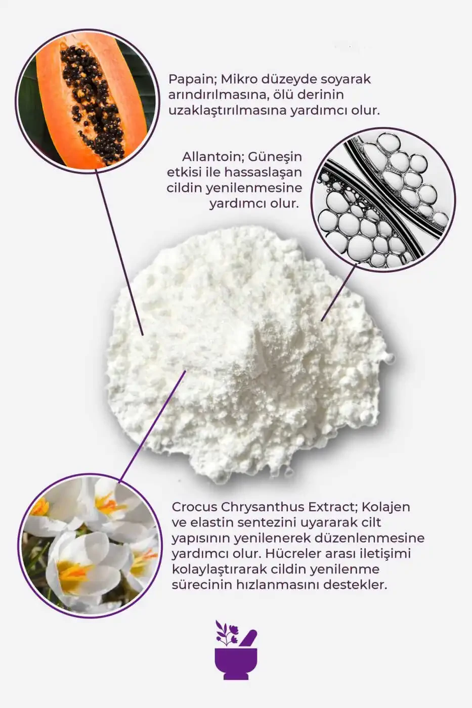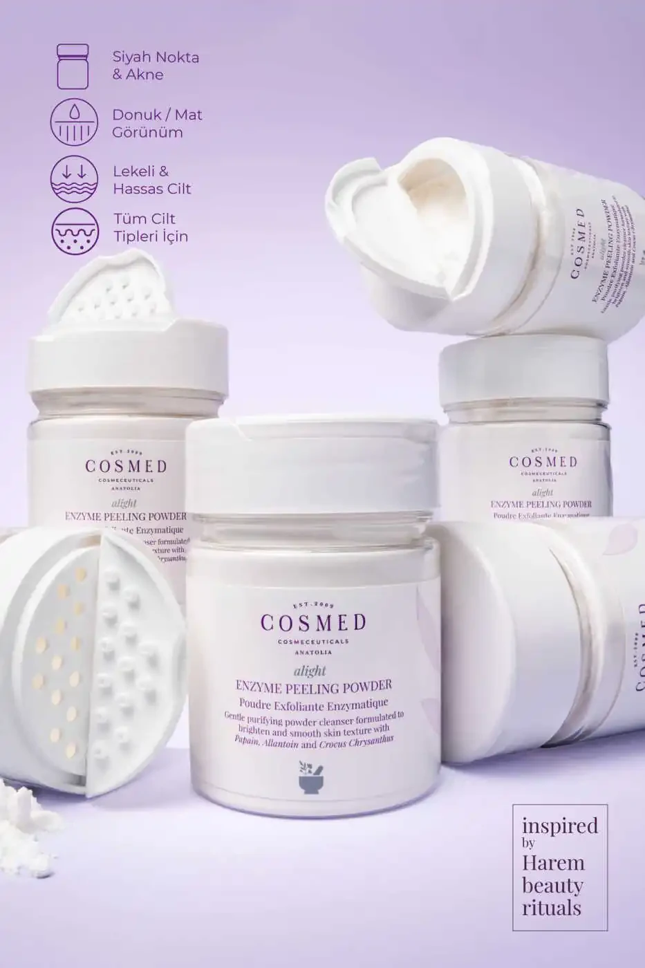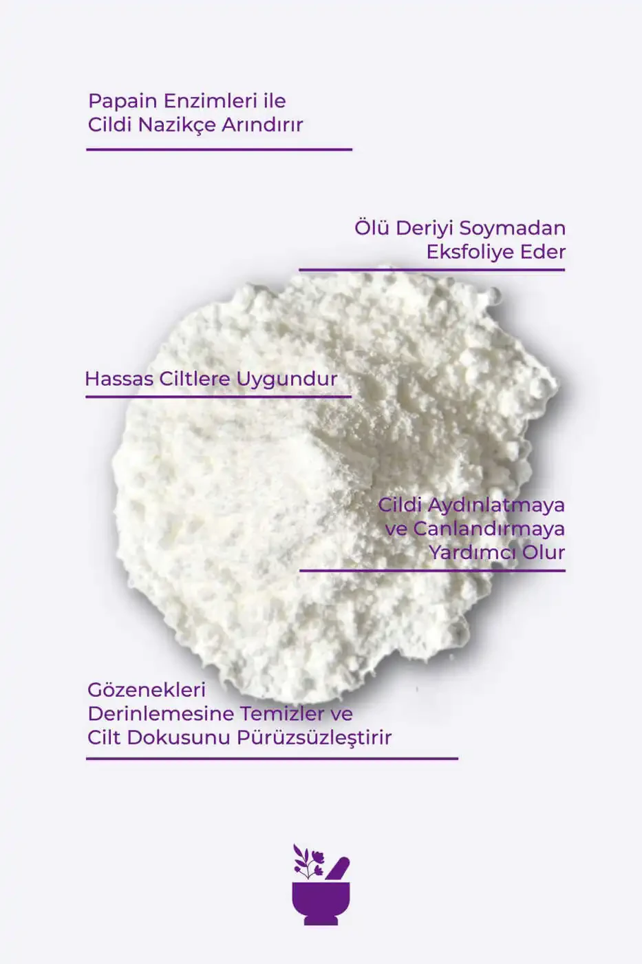 Apply a small amount of peeling powder to damp skin and massage gently in circular motions. After waiting 1-2 minutes, rinse with warm water. You can use it 1-2 times a week.