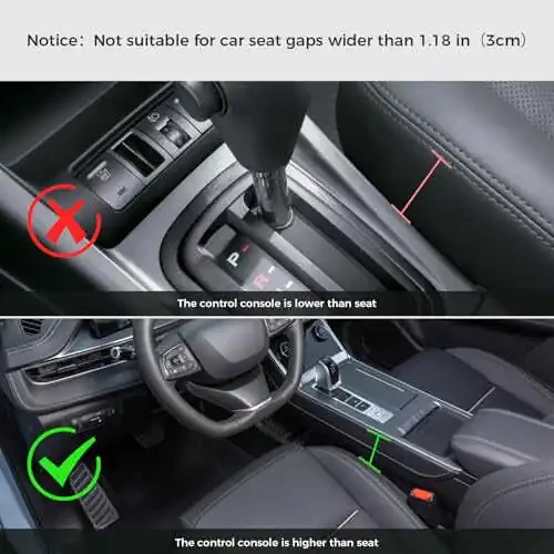Seat Gap Storage Box: This car seat organizer has a good texture that feels smooth and soft. The car gap organizer is made of good leather. Instead of plastic, soft PU leather will not break your seat leather Car Accessories Interior: Car seat gap filler is great for keeping the car tidy, it can prevent small items from falling into the gap. Mobile phones, cards, keys, etc. can be put into car storage organizer, which is convenient for you to take and place at any time Cleverly Designed:Car seat accessory has a dexterous design that won't interfere with seat belts and seats. The organizer has a perforated design on both ends to pass your phone charger cable through to keep the cables in order Scope of Use: This universal front seat organizer will fit any seat seam between 0.2'' and 1.18''. Ideal for cars with a high center console, once tucked into the seam it sits under the armrest and fits snugly into the center console of the vehicle. Please note that this product is not available for all cars Easy Installation: Designed for a quick and hassle-free setup, effortlessly sliding into place without tools