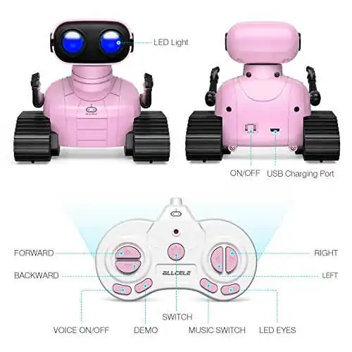 ALLCELE Qizlar uchun Robot O'yinchoq, kichkina malikaning xayoliy dunyosini va ijodini jonlantiradigan ajoyib sovg'a. Qayta zaryadlanadigan batareyadan quvvat olgan bu robot, bolalar uchun ajoyib o'yinchoqdir.