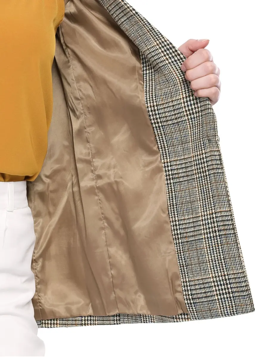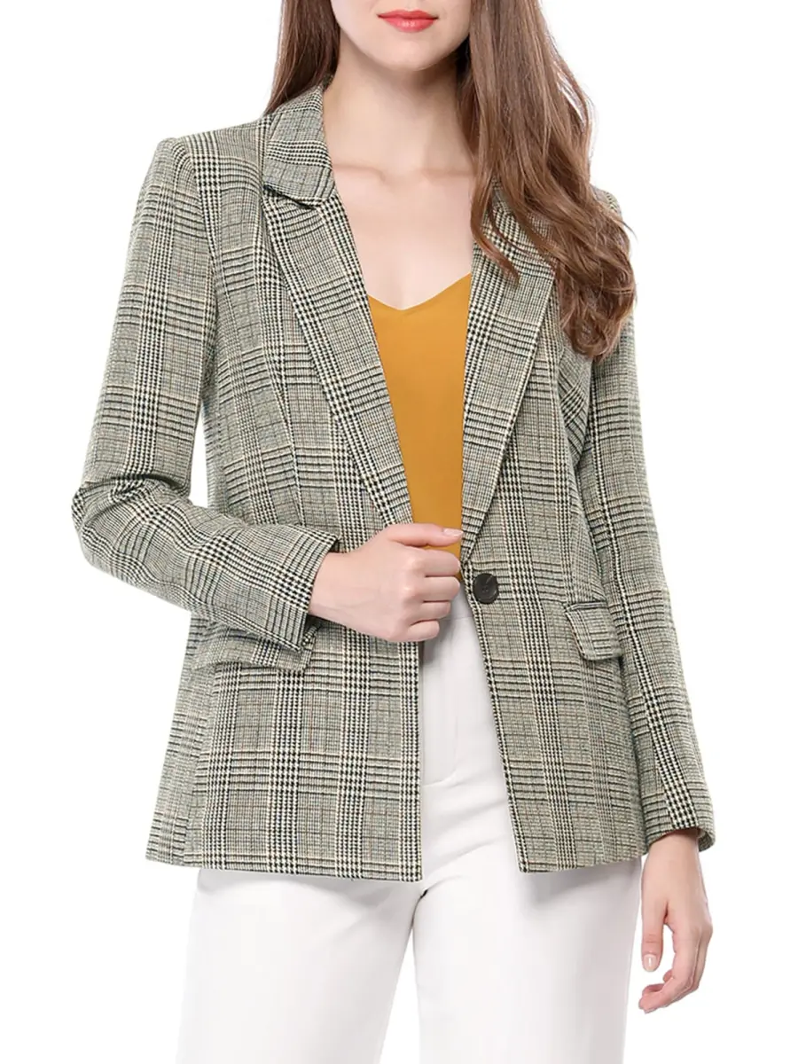 Şıklığı ve zarafeti bir araya getiren Allegra K Kadın Çentikli Yaka Tek Düğmeli Kalça Boyu Köpek Dişi Blazer, gardırobunuzun vazgeçilmez parçalarından biri olacak. Zarif çentikli yakası, tek düğmeli kapatması ve kalça boyu kesimiyle modern bir görünüm sunan blazer, klasik köpek dişi desenine sahip. Yumuşak ve kaliteli kumaştan üretilen blazer, her türlü kombinle uyumlu ve rahat bir kullanım sağlıyor. İster iş toplantılarında, ister günlük hayatta, ister özel davetlerde, bu şık blazer her zaman tarzınızı tamamlayacak.