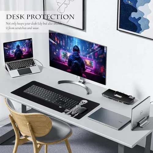 ALOANES Waterproof Mouse Pad bilan o'yin tajribangizni va ish samaradorligingizni yuqori darajaga olib chiqing. XXXL o'lchami bilan klaviaturangiz va sichqonchangizni bir vaqtning o'zida qulay tarzda joylashtirishingiz mumkin bo'lgan ushbu o'yin sichqoncha yostig'i, ham o'yinchilar, ham ofis xodimlari uchun ideal yechimdir. O'ng skelet mavzusidagi dizayni bilan stolingizga o'zgacha bir havo beradi, shu bilan birga taqdim etayotgan yuqori ishlash xususiyatlari bilan ham kutganlaringizni oqlaydi. 35.4'' x 15.7'' x 0.12'' o'lchamidagi ushbu keng sichqoncha yostig'i, sizga cheksiz harakat erkinligini taqdim etadi va o'yinlarda yoki intensiv ish seanslarida kerak bo'ladigan maydonni ta'minlaydi. Bardoshli tikilgan chetlari tufayli uzoq muddatli foydalanishni va'da qiluvchi ALOANES sichqoncha yostig'i, stolingizning ajralmas bir qismiga aylanadi. Tabiiy kauchuk materialdan ishlab chiqarilgan ALOANES sichqoncha yostig'i, ham qulay sirtni taqdim etadi, ham bardoshliligi bilan ajralib turadi. Chet tikuvlari, sichqoncha yostig'ining yemirilishini oldini olib, uzoq muddatli foydalanishni ta'minlaydi. Sirpanmaydigan tagligi tufayli stolingizda mahkam turadi va eng intensiv paytlarda ham joyidan qo'zg'almaydi. Ushbu xususiyat, ayniqsa raqobatbardosh o'yinlarda yoki nozik dizayn ishlarida katta afzallikni ta'minlaydi. Suv o'tkazmaydigan qoplamasi tufayli to'kilgan suyuqliklar sirtda tomchilanib oson tozalanadi, shuning uchun tasodifan sodir bo'lgan suyuqlik to'kilishlaridan xavotirlanishingizga hojat qolmaydi. ALOANES sichqoncha yostig'i, nafaqat bardoshliligi va qulayligi bilan, balki ishlashi bilan ham e'tiborni tortadi. Silliq yuzasi, sichqonchangizning mukammal tarzda sirg'alishini ta'minlaydi, shuning uchun sezuvchanlik va ravonlik talab qiladigan ishlarda yuqori nazoratga erishasiz. Xoh o'yin o'ynang, xoh ofisda ishlang, ALOANES sichqoncha yostig'i sizga har doim eng yaxshi ishlashni taqdim etadi. Bundan tashqari, ushbu keng sichqoncha yostig'i, stolingizni chizilishlardan va yemirilishlardan himoya qilib, mebellaringizning umrini uzaytiradi. ALOANES Waterproof Mouse Pad bilan ham o'yin tajribangizni yaxshilang, ham ish muhitingizni yanada qulayroq qiling.