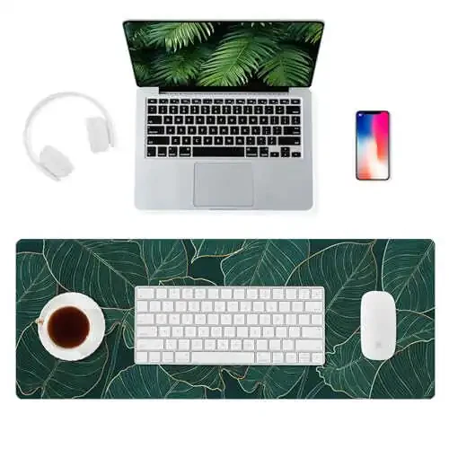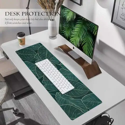 ALOANES Waterproof Mouse Pad with Durable Stitched Edge, Large Gaming Keyboard Pad, Non-Slip Rubber Base, Extended Desk pad for Gamer, Office & Home, Green Leaves Mousepad 27.6''x 11.8''x 0.12''