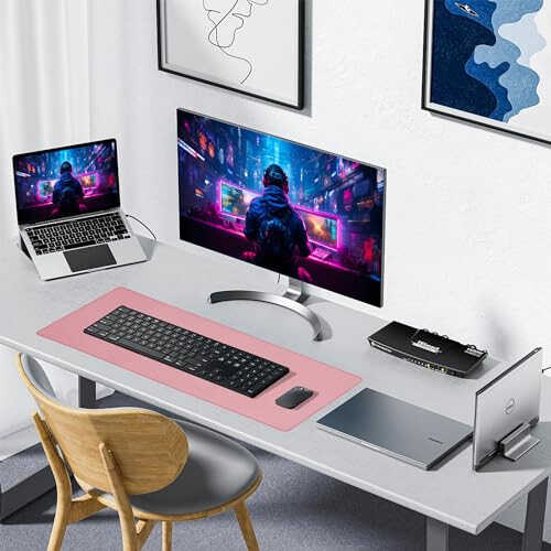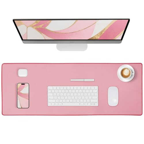 Natural Rubber with Edge Stitching: Composed of premium rubber material and reinforced with neatly stitched edges, it offers both comfort and durability. Non-Slip Stability: Engineered with a skid-proof base, the mouse pad stays anchored to your desk, ensuring slip-free use and steadfast support. Water-Resistant Coating & Easy to Clean: The spill-resistant coating lets liquids bead up and roll off the surface, effectively preventing damage from spills or accidents. Designed with a user-friendly surface that's a breeze to clean. Smooth Gliding: The mouse pad boasts a smooth, frictionless surface that enhances mouse precision and fluidity, perfect for both gaming, home, office and professional tasks. Desk Protection: Designed to prevent scratches and scuffs, this full desk mouse pad preserves the integrity of your desk's surface, keeping it immaculate.