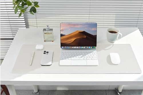 ALOANES Su Geçirmez Fare Altlığı: Dayanıklı Dikişli Kenar, XL Oyun Klavyesi Altlığı, Kaymaz Kauçuk Taban, Oyuncular, Ofis ve Ev İçin Geniş Masa Altlığı, Bej Fare Altlığı 31.5X 11.8 in