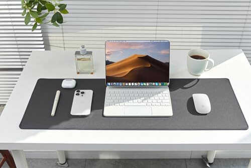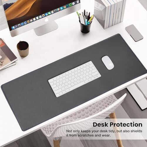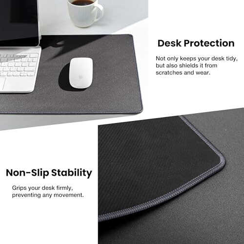 Natural Rubber with Edge Stitching: Composed of premium rubber material and reinforced with neatly stitched edges, it offers both comfort and durability. Non-Slip Stability: Engineered with a skid-proof base, the mouse pad stays anchored to your desk, ensuring slip-free use and steadfast support. Water-Resistant Coating & Easy to Clean: The spill-resistant coating lets liquids bead up and roll off the surface, effectively preventing damage from spills or accidents. Designed with a user-friendly surface that's a breeze to clean. Smooth Gliding: The mouse pad boasts a smooth, frictionless surface that enhances mouse precision and fluidity, perfect for both gaming, home, office and professional tasks. Desk Protection: Designed to prevent scratches and scuffs, this full desk mouse pad preserves the integrity of your desk's surface, keeping it immaculate.
