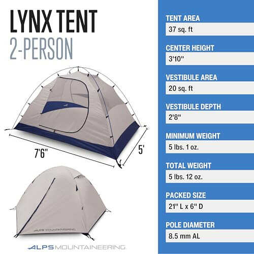 The ALPS Mountaineering Lynx 2-Person Backpacking and Camping Tent is a lightweight, easy-to-set-up, and durable two-person camping tent. This tent is an ideal choice for hiking, camping, and outdoor adventures.