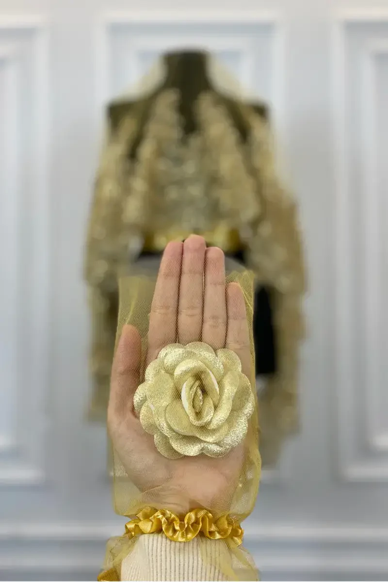 Gold Vıp Deluxe Gelin Duvak Seti, Kına Duvağı 6 Parça Tam Set-Gold, özel günlerinizde zarafetinizi ve şıklığınızı tamamlayacak muhteşem bir seçenektir. Bu set, gelin adayları ve kına gecesi hazırlığında olanlar için özenle tasarlanmış, her detayıyla göz kamaştıran 6 parçadan oluşmaktadır. Düğün ve kına gecesi gibi özel anlarınızda unutulmaz bir iz bırakmanızı sağlayacak bu set, altın renginin asaletini ve ihtişamını taşımaktadır.Ürün AçıklamasıGold Vıp Deluxe Gelin Duvak Seti, en özel günlerinizde sizi bir yıldız gibi parlatacak, unutulmaz anılar biriktirmenize yardımcı olacak 6 parçalık eksiksiz bir settir. Bu set, sadece bir duvak değil, aynı zamanda kına gecenizin ve düğün töreninizin atmosferini zenginleştirecek, size özgüven ve zarafet katacak bir aksesuardır. Altın renginin büyüsüyle tasarlanan bu set, geleneksel ve modern çizgileri harmanlayarak her tarza uyum sağlamaktadır. Setin içerisinde yer alan her bir parça, yüksek kaliteli malzemelerden üretilmiş olup, uzun yıllar boyunca ilk günkü şıklığını koruyacaktır. Gelin duvağı, kına duvağı ve diğer aksesuarlar, titizlikle işlenmiş detayları ve zarif tasarımlarıyla dikkat çekmektedir. Bu set, sadece bir aksesuar değil, aynı zamanda bir anı, bir hatıra ve geleceğe taşınacak değerli bir mirastır. Düğün hazırlıklarınızın en önemli parçalarından biri olacak bu set, gelinliğinizle mükemmel bir uyum sağlayacak ve sizi hayallerinizdeki geline dönüştürecektir. Kına gecenizde ise, geleneksel kıyafetlerinizle birlikte kullanabileceğiniz bu set, size bambaşka bir hava katacak ve gece boyunca tüm gözlerin üzerinizde olmasını sağlayacaktır. Gold Vıp Deluxe Gelin Duvak Seti, sadece bir duvak seti değil, aynı zamanda bir stil ifadesidir. Bu set ile kendinizi özel ve değerli hissedecek, en mutlu günlerinizde kusursuz bir görünüm sergileyeceksiniz. Altın renginin zarafeti ve ihtişamıyla tasarlanan bu set, size unutulmaz anlar yaşatacak ve her zaman hatırlayacağınız bir hatıra olacaktır. Bu set, aynı zamanda sevdiklerinize verebileceğiniz en anlamlı ve değerli hediyelerden biridir. Bir gelin adayına veya kına gecesi hazırlığında olan bir arkadaşınıza bu seti hediye ederek, onların en mutlu günlerinde yanlarında olduğunuzu gösterebilirsiniz. Gold Vıp Deluxe Gelin Duvak Seti, sadece bir ürün değil, aynı zamanda bir duygudur. Bu set ile sevdiklerinizi mutlu edin, en özel anlarınızı unutulmaz kılın.Ürün Özellikleri* 6 parçadan oluşan tam set* Altın rengi* Yüksek kaliteli malzemeler* Gelin ve kına konseptine uygun tasarım* Zarif ve şık detaylarEk BilgilerÜrünümüz özel tasarım kutusunda gönderilmektedir. Kuru temizleme önerilir. Hassas kullanım gerektirir.