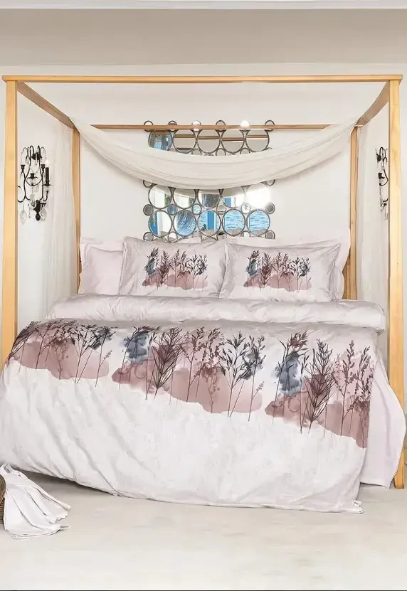 %100 Paxta, 57 Tel Ipliqdan Ishlab Chiqarilgan. Ko'rpa-to'shak: 200x220 sm, Choyshab: 240x260 sm, Yostiq Jildi: 50x70 sm (2 Dona).