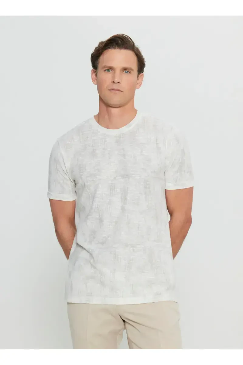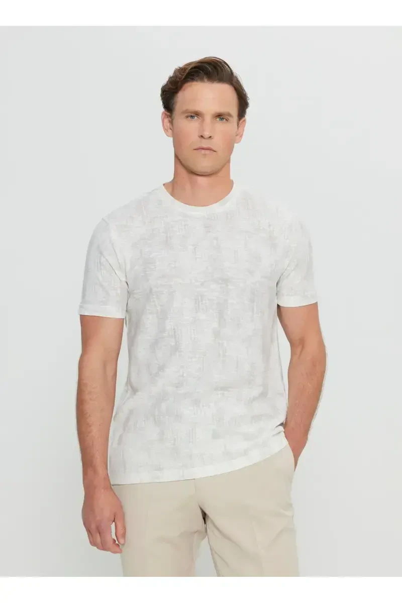 Футболка мужская Altınyıldız Classics с круглым вырезом, с принтом, цвет экрю ACE091252270_EKR – это предмет одежды, сочетающий в себе элегантность и комфорт, который обязательно должен быть в гардеробе современного мужчины. Эта футболка особого дизайна – идеальный выбор, который дополнит ваш стиль как в повседневной жизни, так и в особых случаях. Благодаря высококачественной хлопковой ткани, она обеспечивает комфорт в течение всего дня, а облегающий крой создает современный вид, облегая фигуру. Цвет экрю подходит для любого сочетания и привлекает разные стили. Принт спереди футболки добавляет оригинальности, а круглый вырез подчеркивает элегантность.Эта футболка производства Altınyıldız Classics специально разработана для длительного использования. Прочность ткани сводит к минимуму выцветание и деформацию даже после частых стирок. Детали швов футболки тщательно обработаны и не доставляют дискомфорта при ношении. Облегающий крой подчеркивает фигуру, не ограничивая свободу движений. Теплый тон цвета экрю – это вневременной выбор, который можно носить как летом, так и весной.Эта футболка доступна в различных размерах, поэтому можно найти вариант, подходящий для любого типа фигуры. Уход за футболкой также довольно прост; ее можно стирать в машине и гладить. Мужская футболка Altınyıldız Classics с круглым вырезом и принтом цвета экрю – это предмет одежды, который станет незаменимым для стильных мужчин. Она поможет вам отразить свою элегантность и стиль как в повседневной жизни, так и в особых случаях. С этой футболкой вы не пожертвуете своим комфортом и всегда будете выглядеть ухоженно и стильно. Вы можете быть уверены, что она станет одной из самых любимых вещей в вашем гардеробе. Уникальный дизайн и качественная структура материала изделия позволяют сделать инвестицию, которой вы будете наслаждаться долгие годы. Эта футболка, предлагаемая с гарантией Altınyıldız Classics, привносит новое дыхание в мужскую моду.