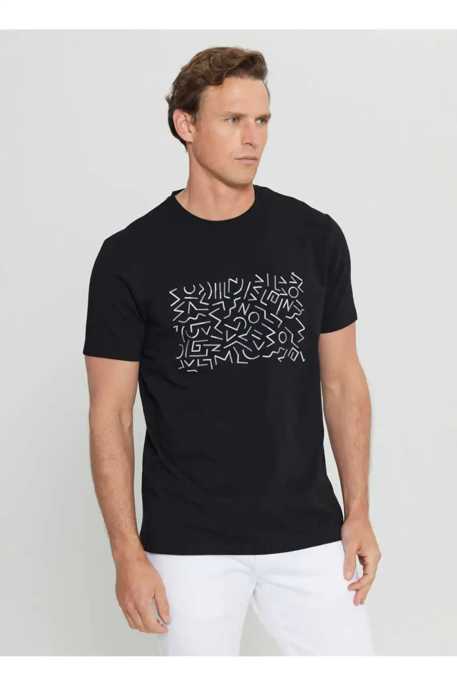 Altınyıldız Classics Erkek Bisiklet Yaka Baskılı Tişört - Siyah