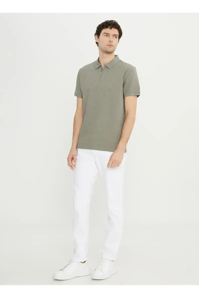 Altınyıldız Classics Fermuarlı Yaka Jakarlı Haki Erkek T-Shirt ACE091252339_HAK