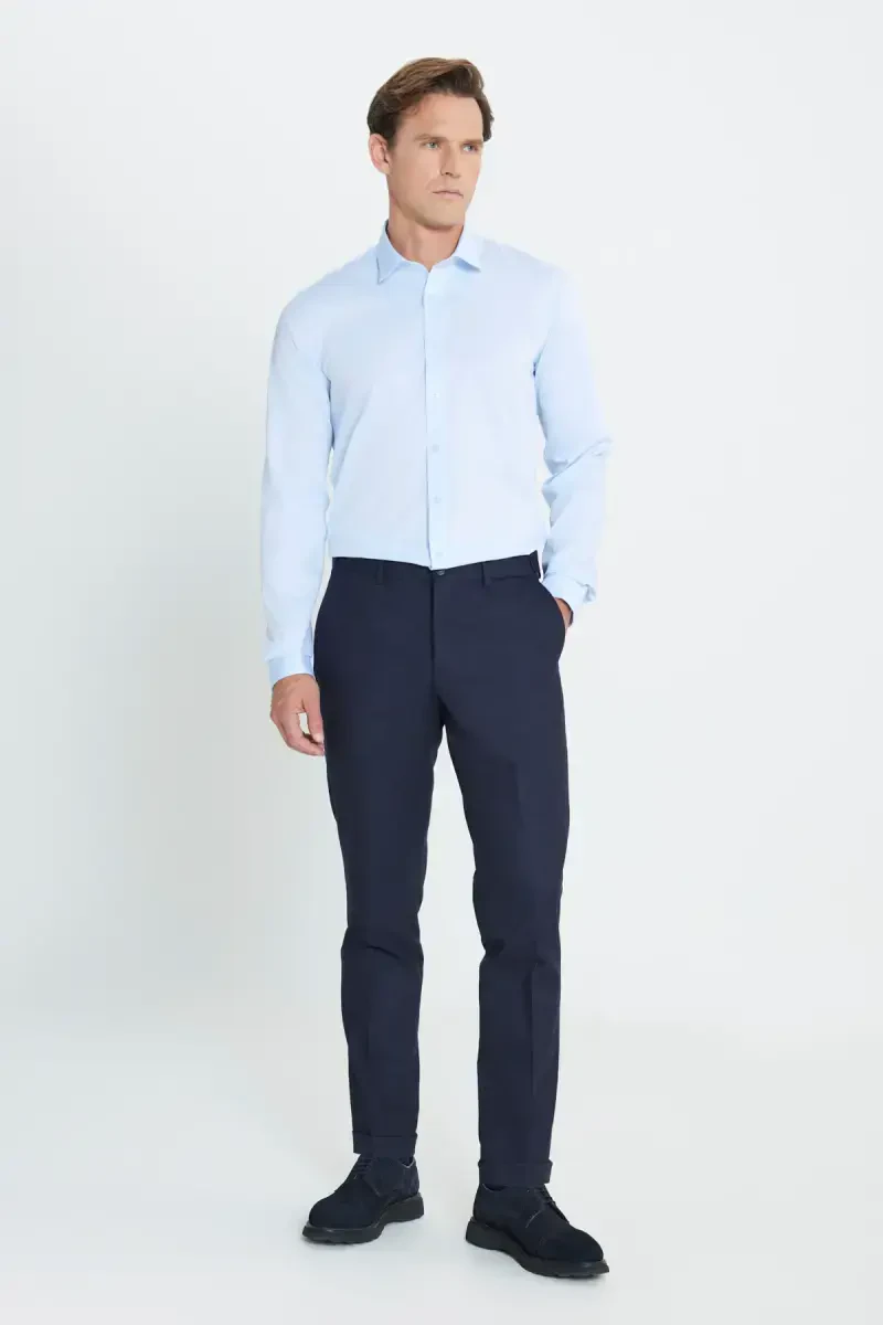 Мужские брюки Altınyıldız Classics Slim Fit с эластичной талией, темно-синие, ACE012510153_PANTOLON KLASIK YAN, отличаются современным дизайном, сочетающим в себе элегантность и комфорт. Эластичная талия обеспечивает комфорт в течение всего дня и идеально сидит, не ограничивая свободу движений. Благодаря облегающему крою они изящно подчеркивают линии тела, а темно-синий цвет делает их универсальным вариантом, который можно легко использовать как в классических, так и в спортивных образах. Эти брюки — идеальный выбор, чтобы дополнить ваш стиль на работе, на особых мероприятиях или в повседневной жизни. Качество ткани и внимание к деталям строчки гарантируют длительный срок службы. Altınyıldız Classics, опираясь на свой многолетний опыт в мужской моде, предлагает дизайн, отвечающий потребностям современного мужчины. Темно-синий цвет брюк легко сочетается с рубашками, футболками и пиджаками разных цветов и узоров. Для создания элегантного образа можно сочетать с рубашкой и блейзером, а для создания более спортивного образа — с футболкой и кроссовками. Эти брюки не только стильно выглядят, но и обеспечивают комфорт в течение всего дня. Эластичная талия обеспечивает гибкость во время движений в течение дня, а облегающий крой создает современный и элегантный силуэт. Эти брюки станут незаменимой вещью в вашем гардеробе и помогут вам отразить свой стиль в любой обстановке. Эти брюки Altınyıldız Classics — идеальный выбор для мужчин, которые ищут сочетание стиля и комфорта. Эти брюки, которые можно носить как в повседневной жизни, так и на особые случаи, поднимут ваш стиль на ступеньку выше. Они помогут вам всегда выглядеть стильно и ухоженно, будь то деловая встреча или званый ужин. Помните, стиль — это не только одежда, но и то, как ее носят. Повысьте уверенность в себе и отразите свой стиль наилучшим образом с помощью мужских брюк Altınyıldız Classics Slim Fit с эластичной талией, темно-синего цвета. Эти брюки, в каждой детали которых чувствуется качество и внимание к деталям, претендуют на то, чтобы стать одной из самых ценных вещей в вашем гардеробе. Закажите сейчас и почувствуйте разницу Altınyıldız Classics.