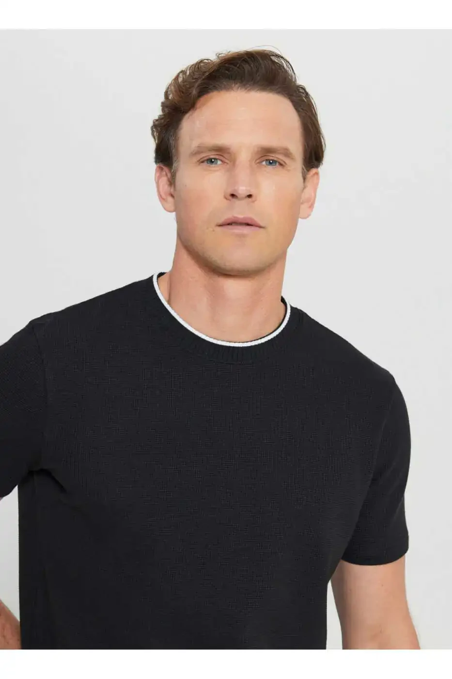 Reflecting the timeless elegance of Altınyıldız Classics, the Polo Neck Jacquard Black Men's T-Shirt ACE091252104_SYH is poised to become an indispensable piece in the modern man's wardrobe. This specially designed t-shirt combines elegance and comfort, offering an option you can comfortably wear in any setting, from daily life to special invitations. Enriched by the nobility of black and the subtle touch of the jacquard pattern, this t-shirt will add a sophisticated touch to your style. Thanks to its slim fit, it fits your body perfectly without sacrificing your freedom of movement. The polo neck detail offers a classic and stylish look. Offering long-term use thanks to its quality fabric, this t-shirt also stands out with its durability and comfort. Offered with the Altınyıldız guarantee, this product will be an investment that will maintain its place in your wardrobe for many years. You can achieve effortless elegance by combining it with jeans and sneakers in daily life, and you can achieve a more formal look by completing it with fabric trousers and classic shoes on special occasions. Easily adapting to every style, this t-shirt is the perfect piece to complete your style. This product is offered for sale in Boyner stores and on the online platform. Hurry up to own this product, which is limited in stock! It awaits you with attractive prices within the campaign.