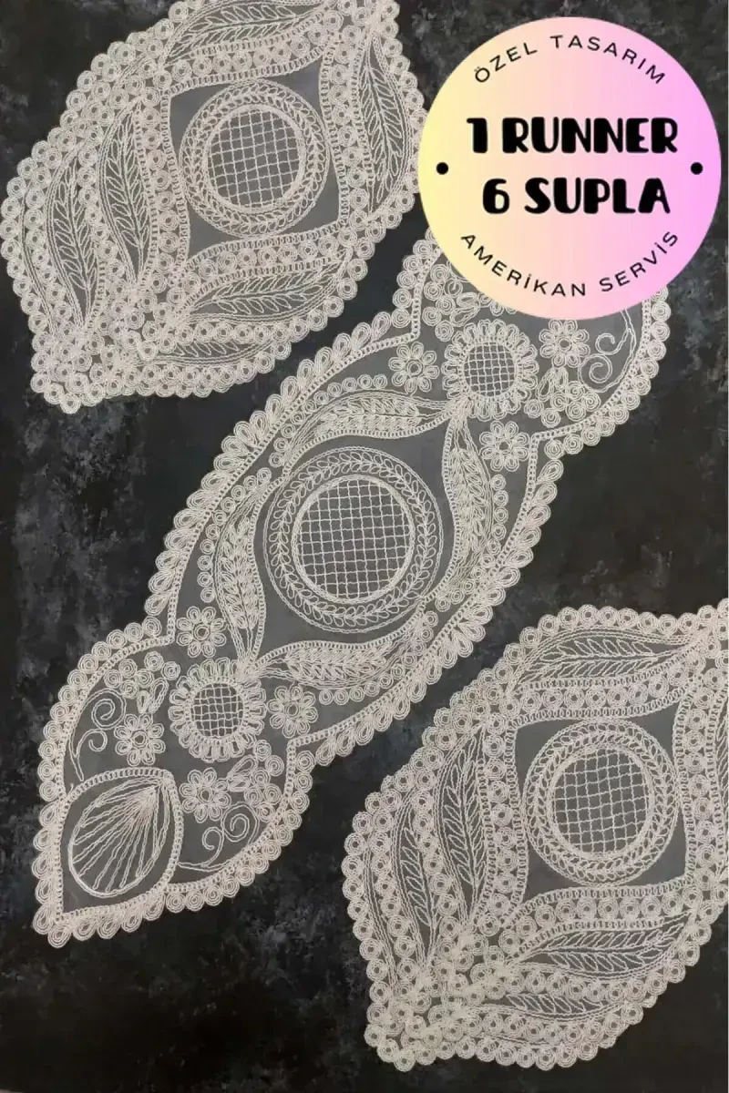 Add elegance and style to your tables with the American Placemat, 1 Runner 6 Charger Plates Gray Dinnerware Set, Tablecloth Set, Serving Presentation Set Model 10. This special design makes your meals more enjoyable and allows you to make a presentation that will impress your guests. Produced with Çeyizci Tekstil quality, this set offers long-lasting use and adds value to your tables. The American placemats, charger plates, and runner included in the set provide integrity on your table with their harmonious color tones and patterns. The nobility of the cream color easily adapts to all kinds of decorations and adds a warm atmosphere to your tables. This set is a versatile product that you can use at any moment, from your special invitations to your daily meals. The embroidered details of the product add a sophisticated touch to your table and make your presentations more attractive. Made of high-quality material, it offers practical use thanks to its easy-to-clean feature. It is an ideal choice for those looking for elegance and order in their tables. Turn your meals into a feast with this set and create unforgettable memories. American Placemat, 1 Runner 6 Charger Plates Gray Dinnerware Set, Tablecloth Set, Serving Presentation Set Model 10, adds an aesthetic touch to your tables, while also standing out with its ease of use and durability. This set, which will be an indispensable part for those who care about table setting, is also a meaningful option that you can give to your loved ones.
