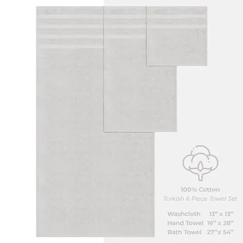 - 6 Piece Set: Includes 2 bath towels, 2 hand towels, and 2 washcloths.
