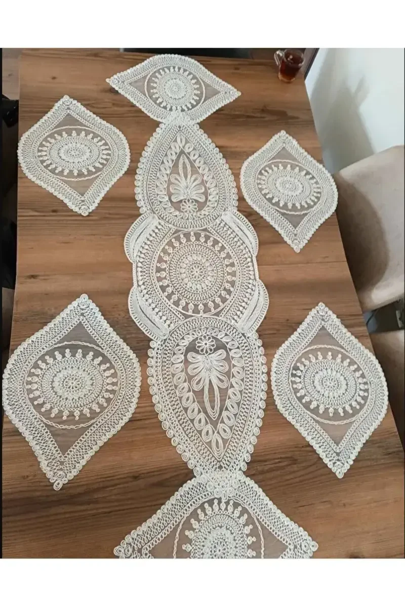 Amerikan servis, runner, supla, ovqatlanish servisi to'plami, stol choyshablari to'plami, dasturxon bezash, krem rangi, taqdimot to'plami, oshxona, uy to'qimachilik