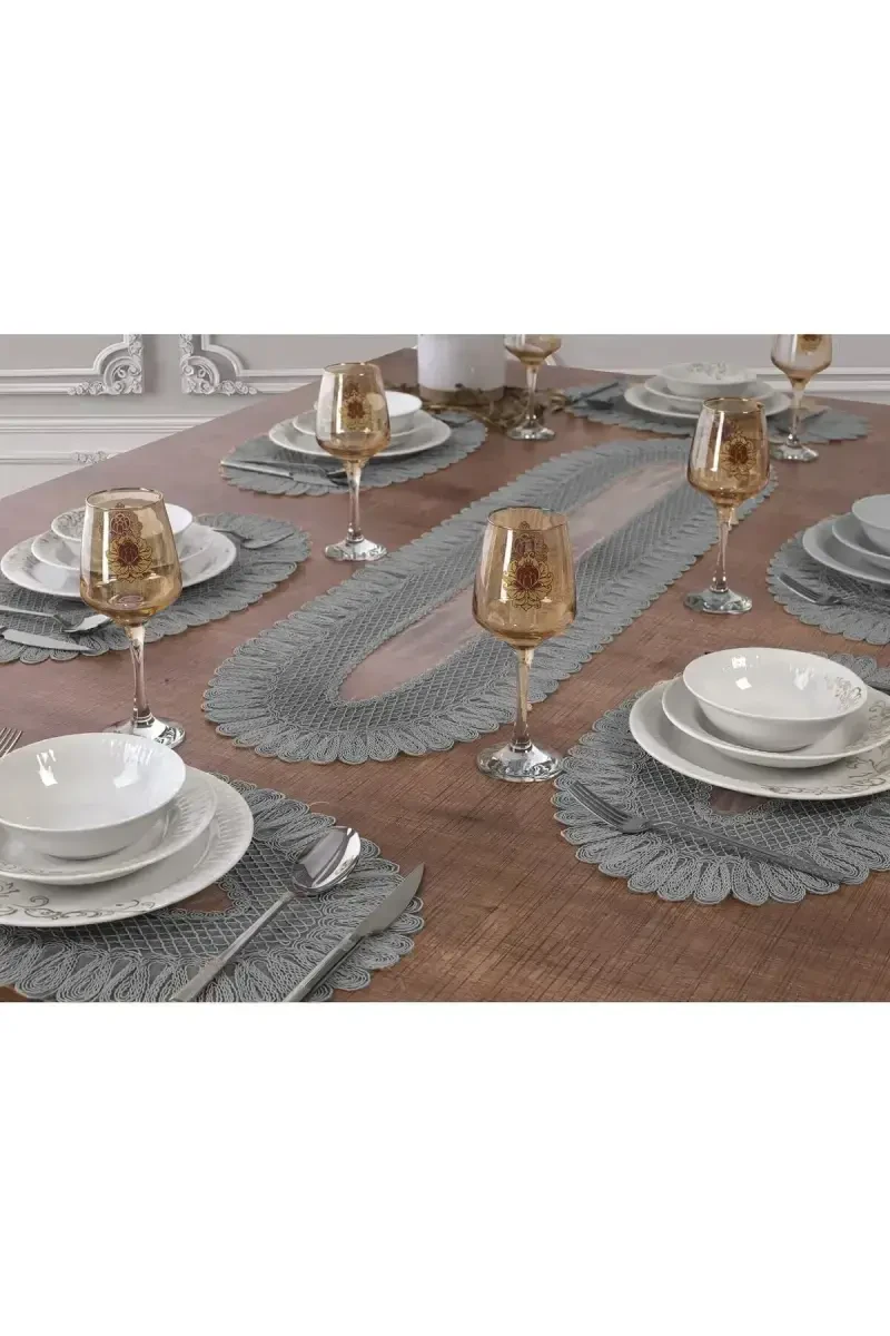 Everything you need for a stylish and elegant table setting! Make your meals more enjoyable with this set consisting of American Service, 1 Runner and 6 Placemats. This set, which will match any tablecloth and decoration with its gray color, will add a modern touch to your table.