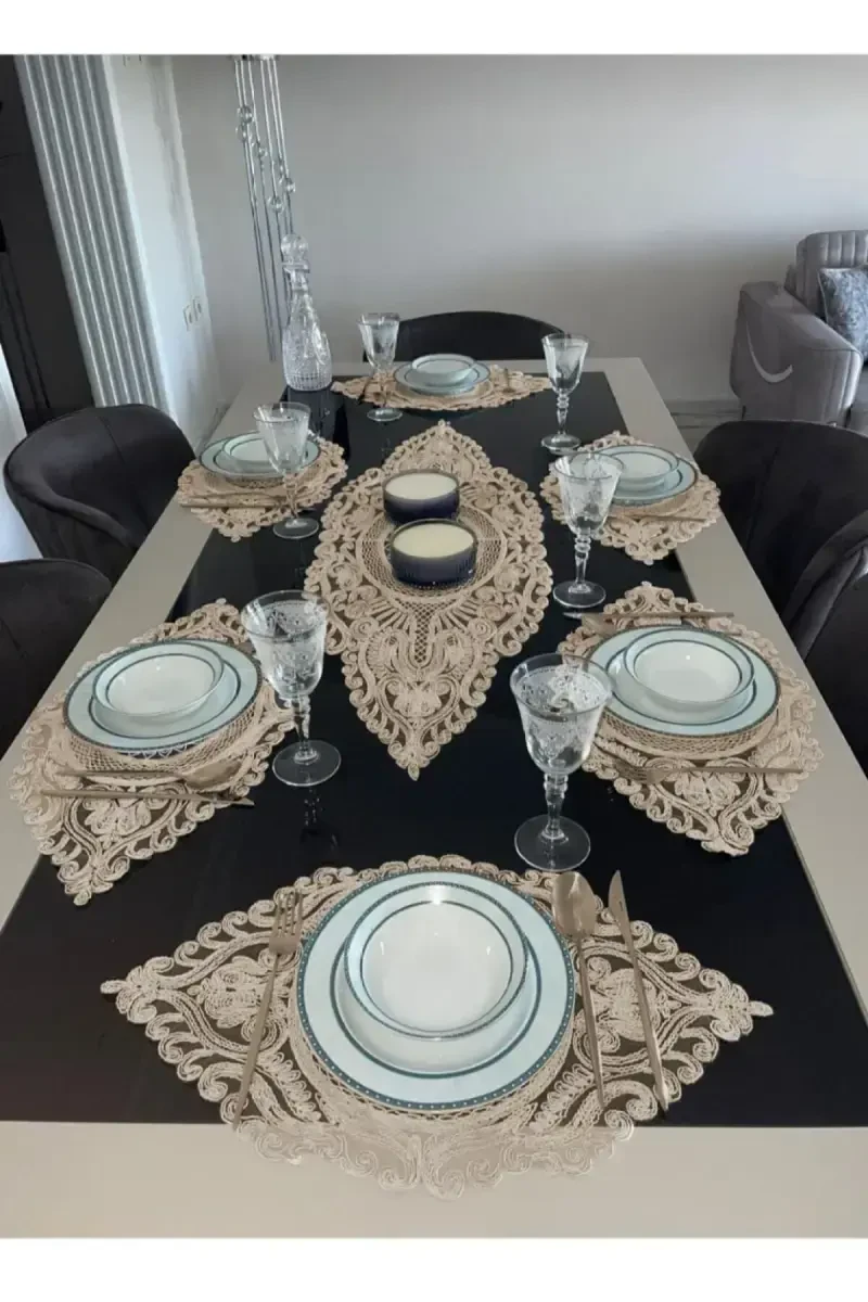 Салфетка, дорожка и подставка под тарелку | Кофейные тона | Çeyizci Tekstil