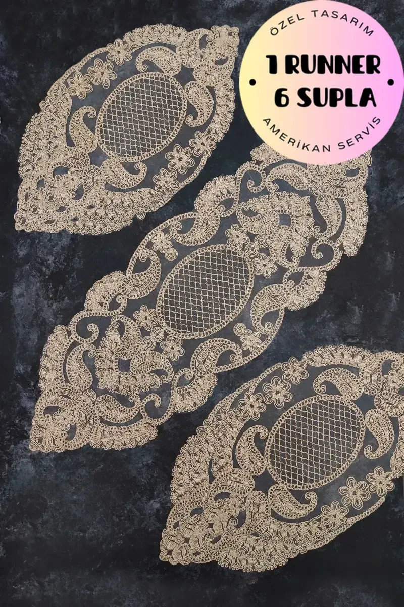 Amerikan Servis, 1 Runner 6 Supla Kahve Yemek Servis Takımı, Masa Örtüsü Seti (YMRT) ile sofralarınıza şıklık ve zarafet katın. Çeyizci Tekstil güvencesiyle sunulan bu özel servis takımı, yemeklerinizi ve özel davetlerinizi unutulmaz kılacak. Yüksek kaliteli malzemelerden üretilmiş olup, hem estetik hem de kullanışlı bir deneyim sunar. Sofralarınızda görsel bir şölen yaratırken, pratik kullanımıyla da hayatınızı kolaylaştırır. Bu set, sadece bir masa örtüsü değil, aynı zamanda bir yaşam tarzı sunar.Her bir parçası özenle tasarlanmış bu set, modern ve klasik tarzları bir araya getirerek her türlü dekorasyona uyum sağlar. Runner, supla ve Amerikan servislerinin uyumu, sofralarınıza bütünlük ve düzen getirir. Kahve ve yemek servislerinizde kullanabileceğiniz bu set, misafirlerinizi ağırlarken size yardımcı olacak ve onlara unutulmaz bir deneyim yaşatacaktır.Bu özel set, uzun ömürlü kullanım için dayanıklı malzemelerden üretilmiştir. Leke tutmaz özelliği sayesinde kolayca temizlenebilir ve her zaman ilk günkü gibi şık görünür. İster günlük kullanım için ister özel davetler için olsun, bu servis takımı her zaman sofralarınızın yıldızı olacaktır.Çeyizci Tekstil kalitesiyle sunulan bu ürün, kampanyalı fiyatıyla da dikkat çekiyor. Ancak stoklarla sınırlı sayıda sunulduğunu unutmayın. Birden fazla satıcı tarafından satışa sunulmuş olsa da, en uygun fiyat ve güvenilir satıcı seçeneklerini değerlendirerek bu eşsiz ürüne sahip olabilirsiniz.Unutmayın, bu üründen en fazla 10 adet sipariş verebilirsiniz. Bu limit, kurumsal siparişler için geçerli olmayıp, kurumsal siparişler için farklı limitler belirlenebilmektedir. Ayrıca, ürünü beğenmezseniz 15 gün içinde ücretsiz iade edebilirsiniz. Detaylı bilgi için iade koşullarını inceleyebilirsiniz.
