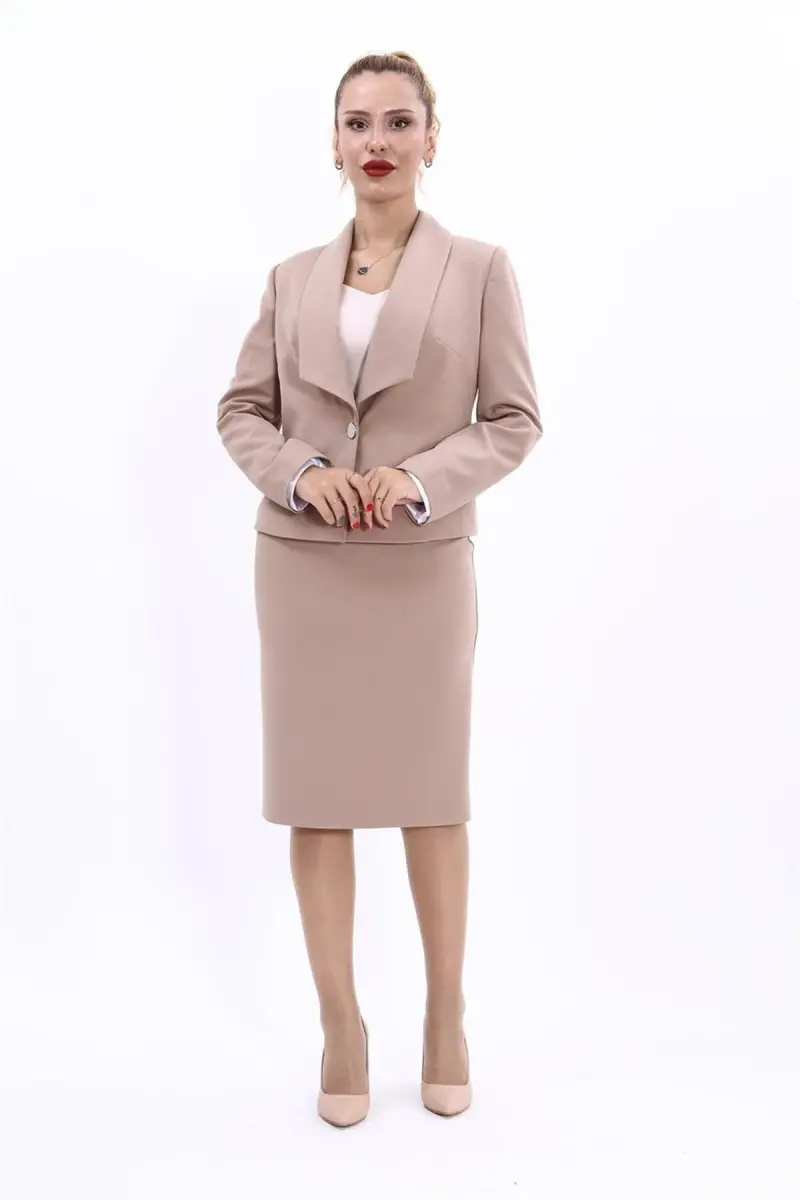 Amerikan Yaka Kısa Klasik Ceket & Düz Dar Etek-Taş-Taş