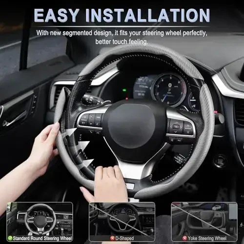 Amiss 3'li Karbon Fiber Kaymaydigan Rul G'ilofi, Segmentli & Kapalak Dizayni, Universal 99% Avtomobil Rul G'ilofi Himoyachisi, Kulrang