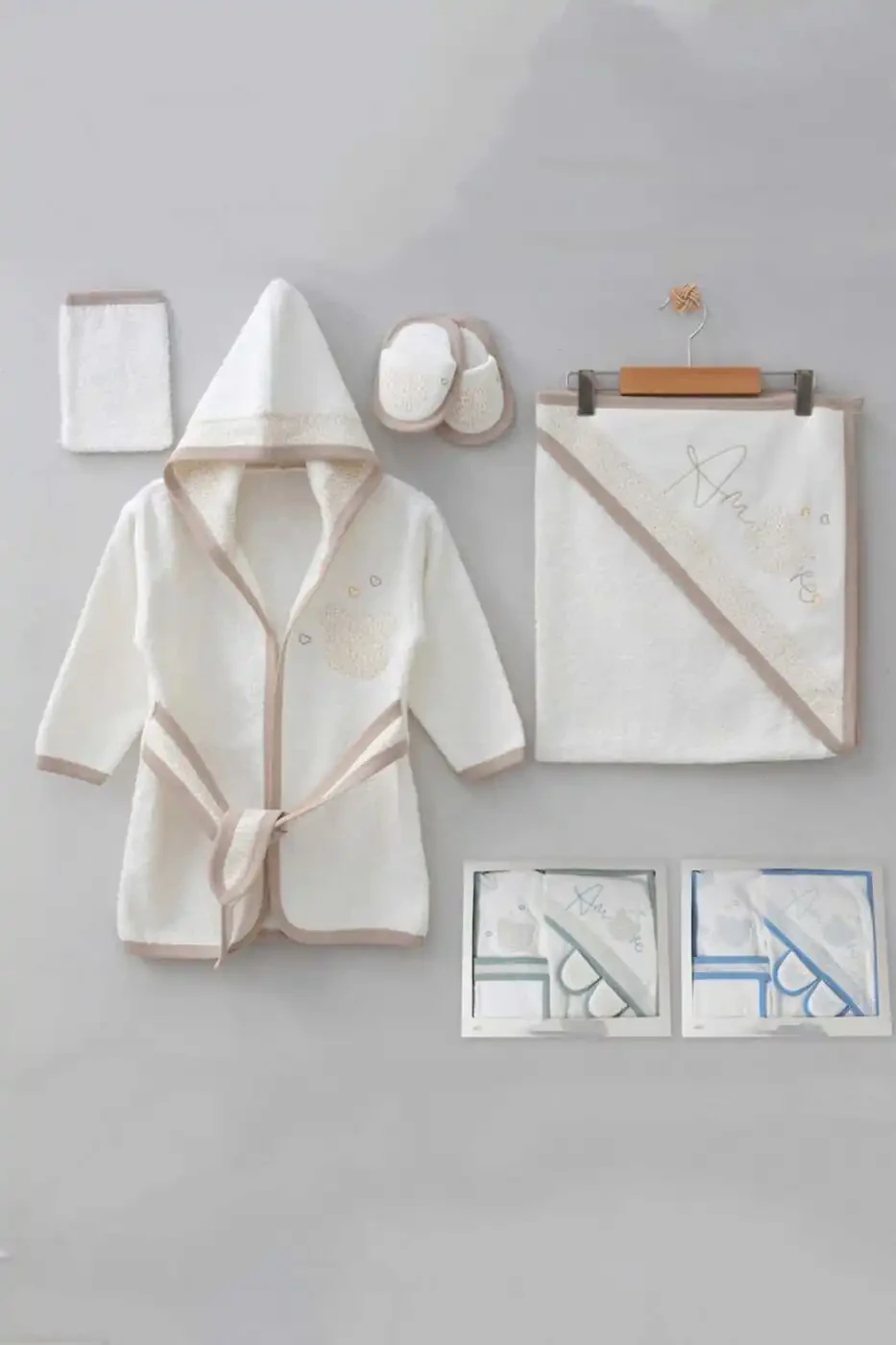 The Amore Bear Head Gaye Baby Towel Robe Set is the perfect gift choice for your newborn baby. This set, which will provide your baby with comfortable and cute moments from the first days of their life, will make the happy baby's first years even more special.