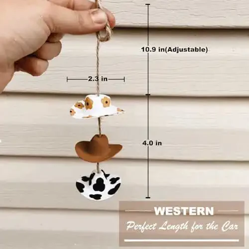 Амулет для автомобиля в виде ковбойской шляпы изготовлен из прочного фетра и рассчитан на долговечность. Украшенная подсолнечными узорами и коровьим принтом, шляпа придает кантри-стиль. Это практичный аксессуар, который вы можете легко повесить на зеркало заднего вида вашего автомобиля.