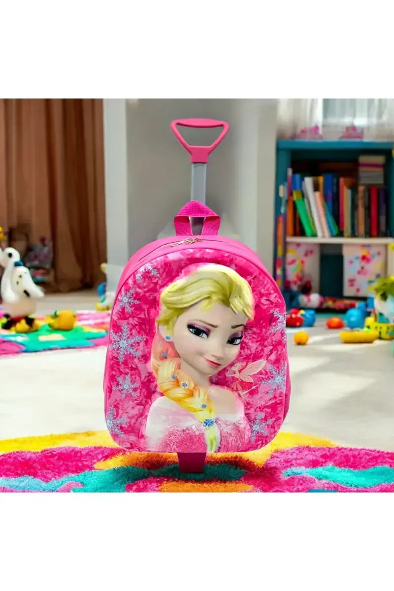 Kindergarten Nursery School Children's Suitcase Backpack Trolley Wheeled - Elsa Licensed, Waterproof fabric, Large internal volume, Adjustable shoulder strap, Trolley mechanism, Wheeled design, Elsa print, Lightweight and durable material.