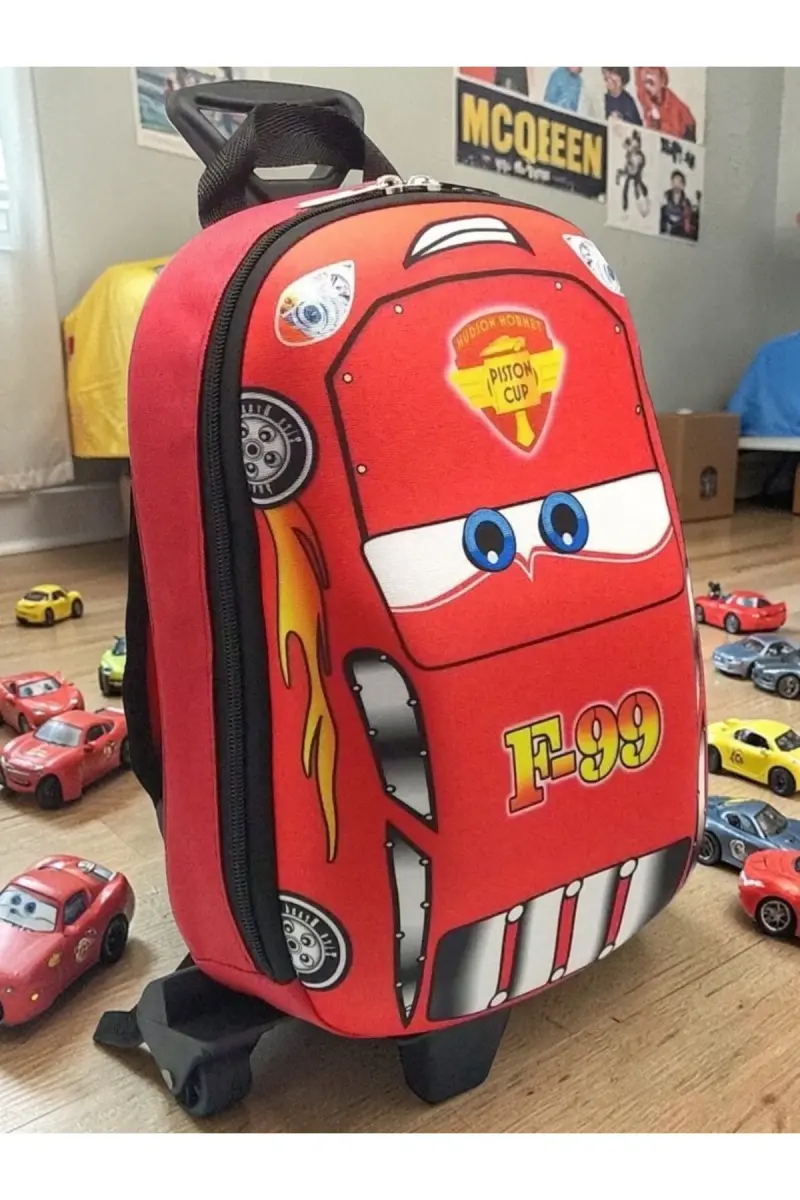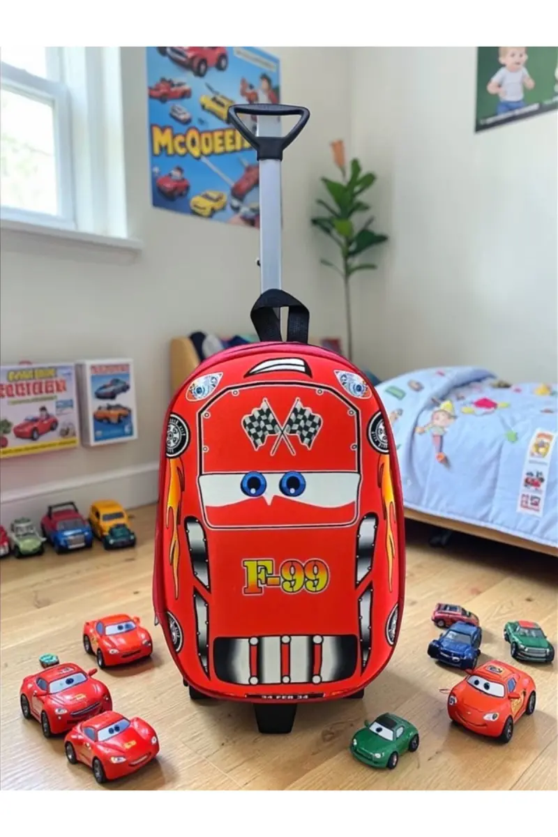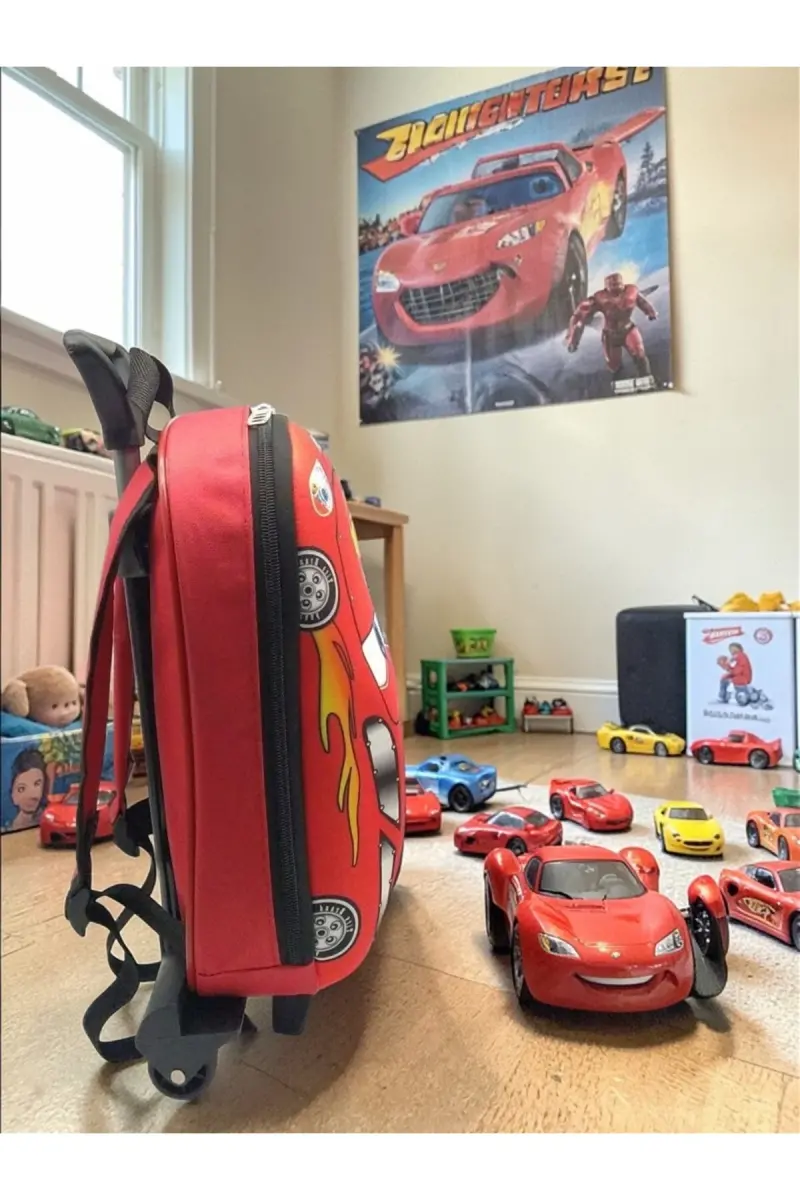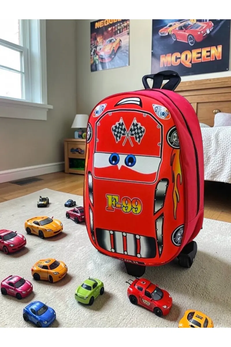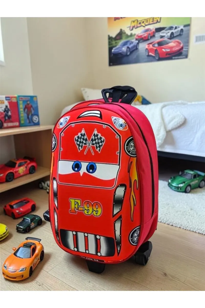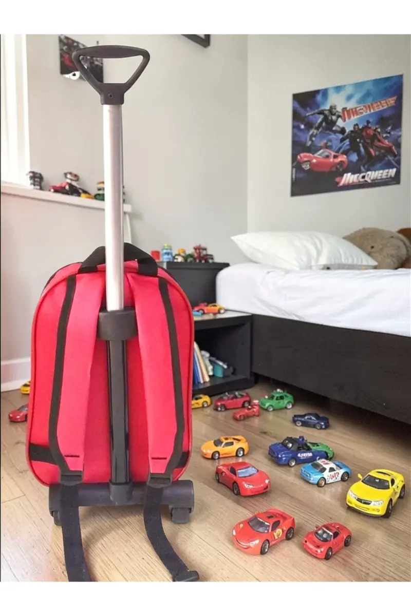 Anaokulu Kreş Çocuk Valiz Sırt Çantası Çekçekli Tekerlekli-Kırmızı