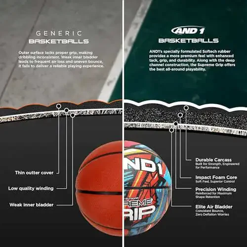 AND1 Supreme Grip Basketbol To'pi: Rasmiy 7-o'lcham - Ko'cha Basketboli Uchun Mukammal Tanlov