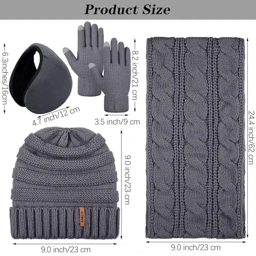 Har bir to'plamda 1 dona shapka, 1 dona sharf, 1 juft sensorli ekranli qo'lqop va 1 dona naushnik mavjud. Bahor, kuz va qish oylarida foydalanish uchun mos keladi. Nafis dizayni tufayli sovg'a sifatida ham tanlanishi mumkin.