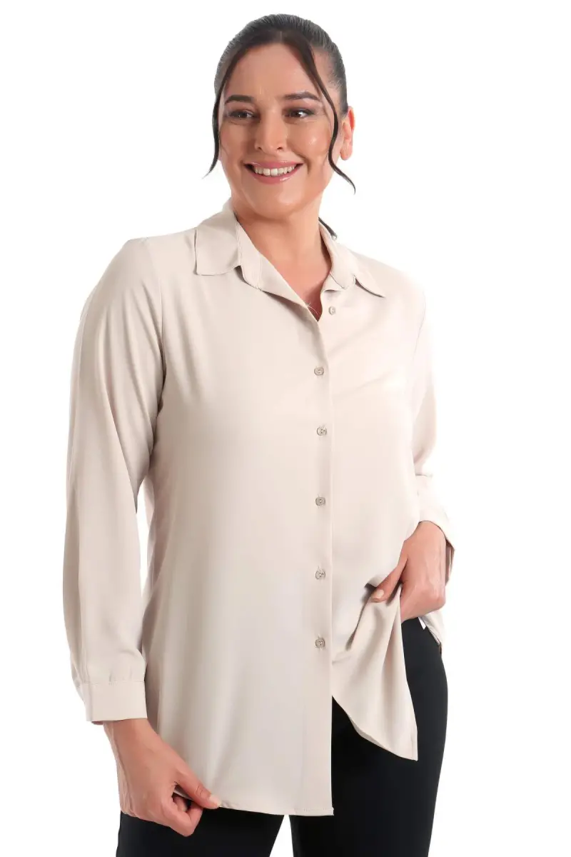 Рубашка большого размера Angelino Basic бежевого цвета станет незаменимой частью вашего гардероба! Эта стильная рубашка, отражающая энергию весны и лета, сочетает в себе комфорт и элегантность. Она изготовлена из 100% полиэстера, мягкого и легкого материала, который обеспечивает комфорт в течение всего дня. Благодаря своему базовому дизайну эта рубашка легко сочетается с любым нарядом, предлагая вневременную элегантность. Будь то повседневная жизнь или особые случаи, в рубашке большого размера Angelino Basic бежевого цвета вы всегда будете чувствовать себя стильно и комфортно. Эта рубашка с современным и изящным кроем, идеально облегающим вашу фигуру, имеет длинные рукава и декоративные пуговицы, которые создают привлекательный образ. Длина ниже бедер позволяет ей идеально сочетаться как с брюками, так и с юбками. Вы можете создать элегантный и изысканный образ, сочетая ее, в частности, с тканевыми брюками. Благодаря легкой и дышащей ткани ее можно носить с комфортом даже в жаркую погоду. Она позволит вам чувствовать себя комфортно, не жертвуя стилем, в повседневной жизни, на работе, в школе или на особых мероприятиях. Рубашка большого размера Angelino Basic бежевого цвета - это базовая вещь, которая должна быть в гардеробе каждой женщины. Закажите сейчас и наслаждайтесь вневременной элегантностью!