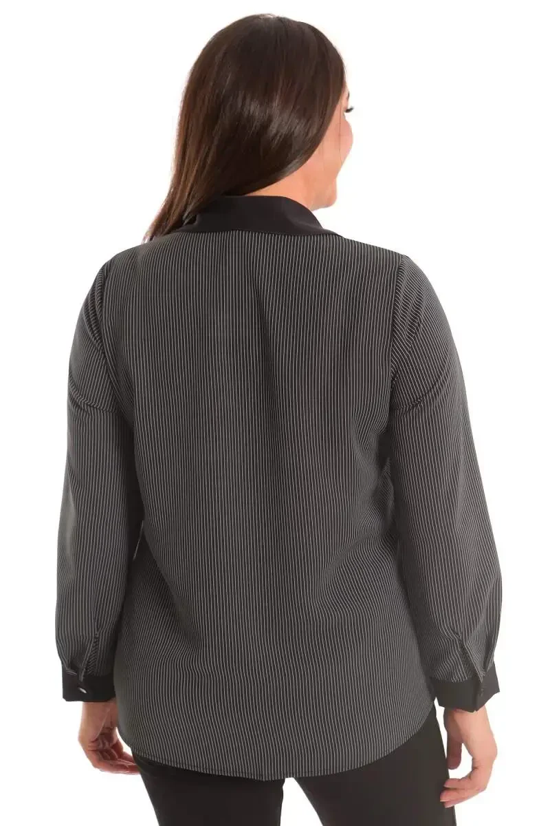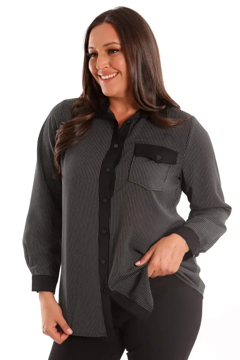 Angelino Большой Размер Черная Рубашка в Полоску с Карманами | Мужская Рубашка