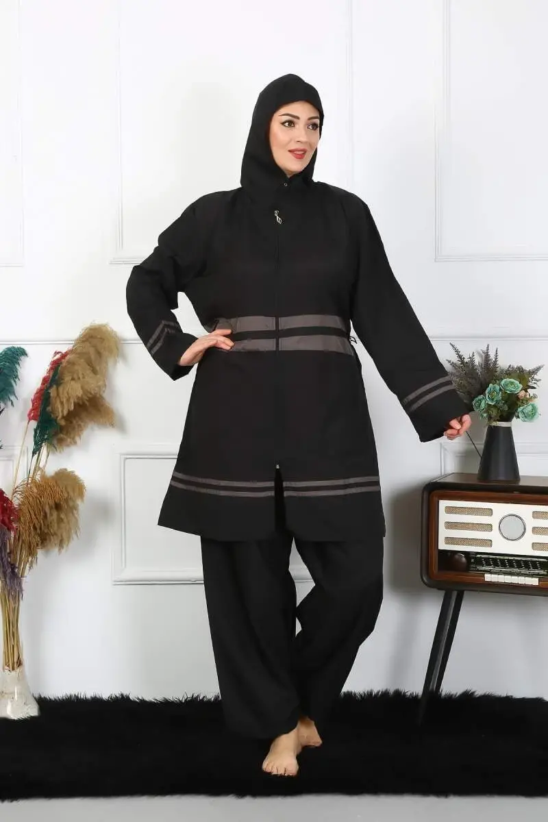 Мусульманский купальник больших размеров Angelino разработан для того, чтобы вы могли свободно наслаждаться пляжем и бассейном, сочетая в себе стиль и комфорт. Благодаря широкому размерному ряду от 7XL до 10XL, вы можете подобрать вариант, идеально соответствующий вашим формам, и чувствовать себя уверенно в любой момент. Полностью закрытый дизайн делает его идеальным выбором как для тех, кто придерживается консервативного стиля одежды, так и для тех, кто хочет защитить себя от вредного воздействия солнечных лучей. Специальная ткань из 100% полиэстера обладает водоотталкивающими свойствами, благодаря чему купальник быстро сохнет после выхода из моря или бассейна. Регулируемые эластичные зажимы на талии и манжетах брюк предотвращают задирание купальника во время плавания или движения, обеспечивая идеальную посадку. Эта модель, выполненная в благородном черном цвете, обладает вневременным внешним видом, который подойдет для любого возраста и вкуса. Благодаря качественному пошиву и прочной текстуре, купальник сохраняет свою форму даже при длительном использовании. Размер 7XL, представленный на модели, дает четкое представление о том, как изделие будет сидеть на вас. Если вы хотите провести свой отпуск более комфортно и стильно, серия мусульманских купальников Angelino позволит вам достичь вершины комфорта. Чтобы ваш купальник сохранил свой первоначальный вид, рекомендуется промывать его большим количеством воды после каждого использования и избегать контакта с шероховатыми поверхностями.