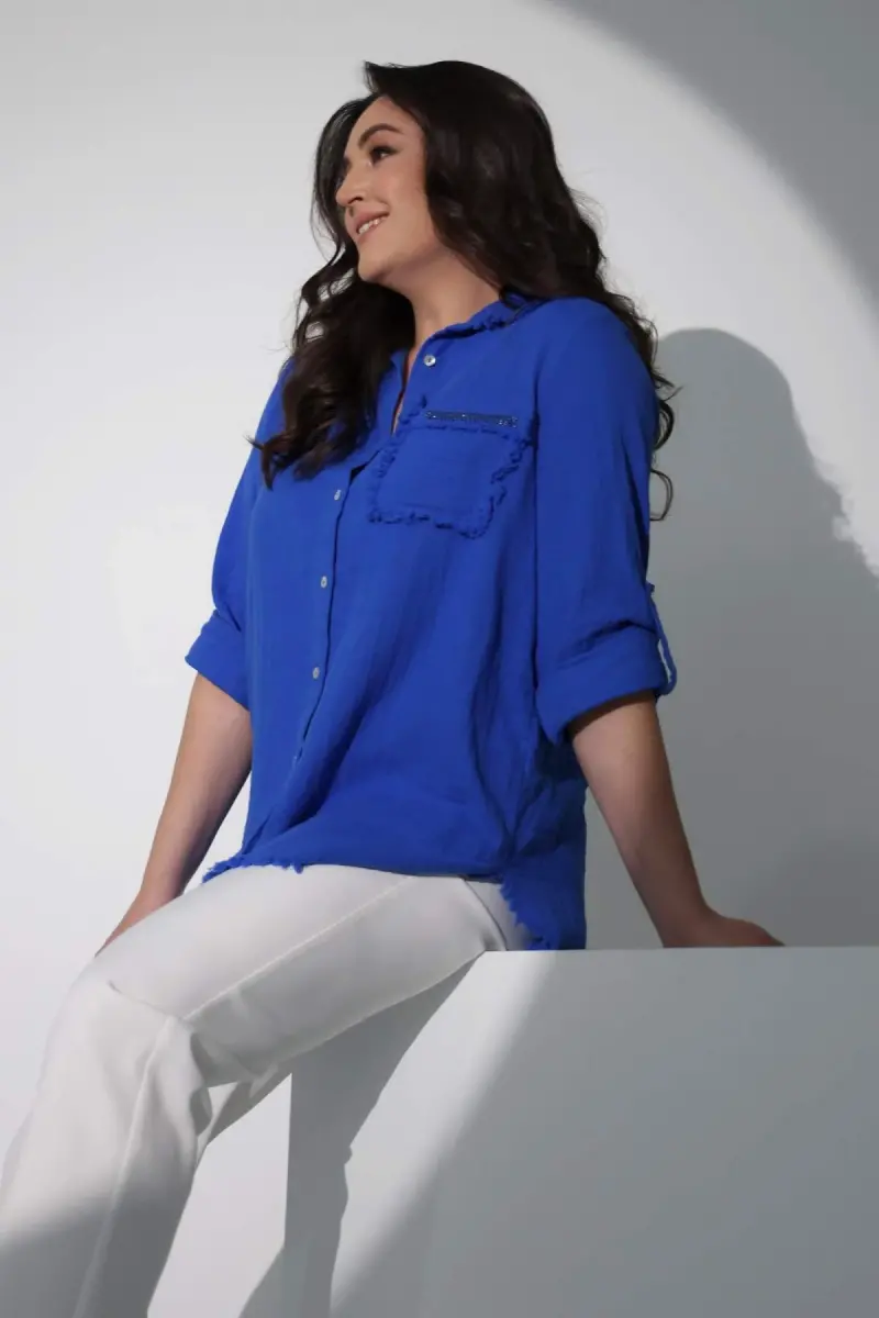 Отразите энергию весны и лета в своем стиле с рубашкой Angelino большого размера с карманами, принтом камней, бахромой и муслином саксового цвета! Эта рубашка особого дизайна, сочетающая в себе комфорт и элегантность, станет незаменимой вещью в вашем гардеробе. Этот предмет, привлекающий внимание своим привлекательным саксовым цветом и уникальными деталями, позволит вам выделиться в любой обстановке. Независимо от того, предпочитаете ли вы носить ее ежедневно или на специальном мероприятии, вы всегда будете чувствовать себя стильно и комфортно в рубашке Angelino.Легкий и дышащий муслиновый материал обеспечивает комфорт в течение всего дня даже в жаркую погоду. Удобный крой рубашки идеально сидит по фигуре, не ограничивая свободу движений. Каменные принты на деталях кармана придают дизайну элегантный вид, делая рубашку более привлекательной. Бахрома на подоле создает богемный вид и добавляет вашему стилю индивидуальности.Рубашка Angelino большого размера с карманами, принтом камней, бахромой и муслином саксового цвета легко сочетается с различными комбинациями. Вы можете ослепить всех на специальных мероприятиях, сочетая ее с тканевыми брюками или элегантной юбкой. Для более спортивного вида вы можете дополнить свой повседневный стиль, сочетая ее с джинсами или шортами. Благодаря функции складывающихся рукавов вы можете регулировать рубашку в соответствии с различными погодными условиями и своим стилем. Длина до бедер создает современный и практичный силуэт.Эта рубашка не только стильно выглядит, но и очень практична в использовании. Благодаря легкой текстуре и удобному крою, которые позволят вам оставаться энергичным даже в напряженные дни, вы будете чувствовать себя комфортно в течение всего дня. Отразите свой стиль и наслаждайтесь каждым моментом с рубашкой Angelino большого размера с карманами, принтом камней, бахромой и муслином саксового цвета! Помните, эта рубашка — не просто одежда, это стиль жизни. Выберите Angelino, чтобы чувствовать себя особенной и свободной, и покоряйте своим стилем.