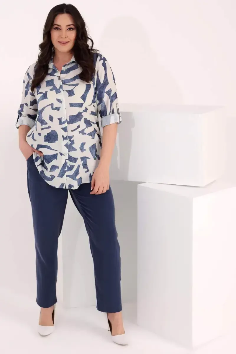 Angelino Büyük Beden Desenli Viskoz İndigo Gömlek ile baharın canlılığını ve yazın enerjisini gardırobunuza taşıyın! Bu özel tasarım gömlek, rahatlığı ve şıklığı bir araya getirerek her ortamda dikkat çekmenizi sağlayacak. Göz alıcı desenleri ve indigo renginin derinliği ile bu gömlek, stilinize özgün bir dokunuş katacak. %100 viskoz kumaşın hafif ve yumuşak dokusu, gün boyu üzerinizde yokmuş gibi bir his yaratırken, şık görünümünüzden de ödün vermemenizi sağlar. Angelino Büyük Beden Desenli Viskoz İndigo Gömlek, sadece rahatlığı değil, aynı zamanda şıklığı da ön planda tutan kadınlar için ideal bir seçimdir. İster günlük kullanımda, ister özel bir davette, bu gömlek ile her zaman kendinizi iyi hissedeceksiniz. Geçiş desenlerinin modern ve dinamik görünümü, gömleği diğerlerinden ayırırken, katlanabilir kol detayı ise işlevsellik sunar. Kolayca kıvrılabilen kolları sayesinde, farklı hava koşullarına ve ortamlara uyum sağlayabilirsiniz. Kalça altı boyu, hem pantolonlarla hem de eteklerle mükemmel bir uyum yakalamanızı sağlarken, vücut hatlarınızı zarif bir şekilde ortaya çıkarır. Angelino Büyük Beden Desenli Viskoz İndigo Gömlek, gardırobunuzun vazgeçilmez bir parçası olmaya aday. Özellikle kumaş pantolonlarla kombinlendiğinde, sofistike ve şık bir görünüm elde edebilirsiniz. Ofiste, şehirde veya hafta sonu kaçamaklarında, bu gömlek ile her zaman stil sahibi olacaksınız. İndigo renginin asil duruşu, her türlü kombinasyona kolayca adapte olmanızı sağlarken, desenli kumaşın hareketliliği ise tarzınıza farklı bir boyut kazandırır. Yoğun günlerde bile enerjinizi yüksek tutmanıza yardımcı olacak bu gömlek, aynı zamanda konforlu bir kullanım sunar. Angelino Büyük Beden Desenli Viskoz İndigo Gömlek ile stilinizi özgürce ifade edin ve her anın tadını çıkarın. Bu gömlek, sadece bir giysi değil, aynı zamanda bir yaşam tarzıdır. Şıklığı ve rahatlığı bir arada sunan bu özel tasarım ile kendinizi her zaman özel hissedin. Unutmayın, stil detaylarda gizlidir ve bu gömlek, stilinizi en iyi şekilde yansıtmanıza yardımcı olacaktır. Angelino ile modayı yakalayın ve kendinizi her zaman iyi hissedin!