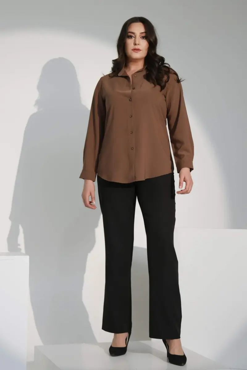 Ангелино Большая Размер Базовая Коричневая Рубашка